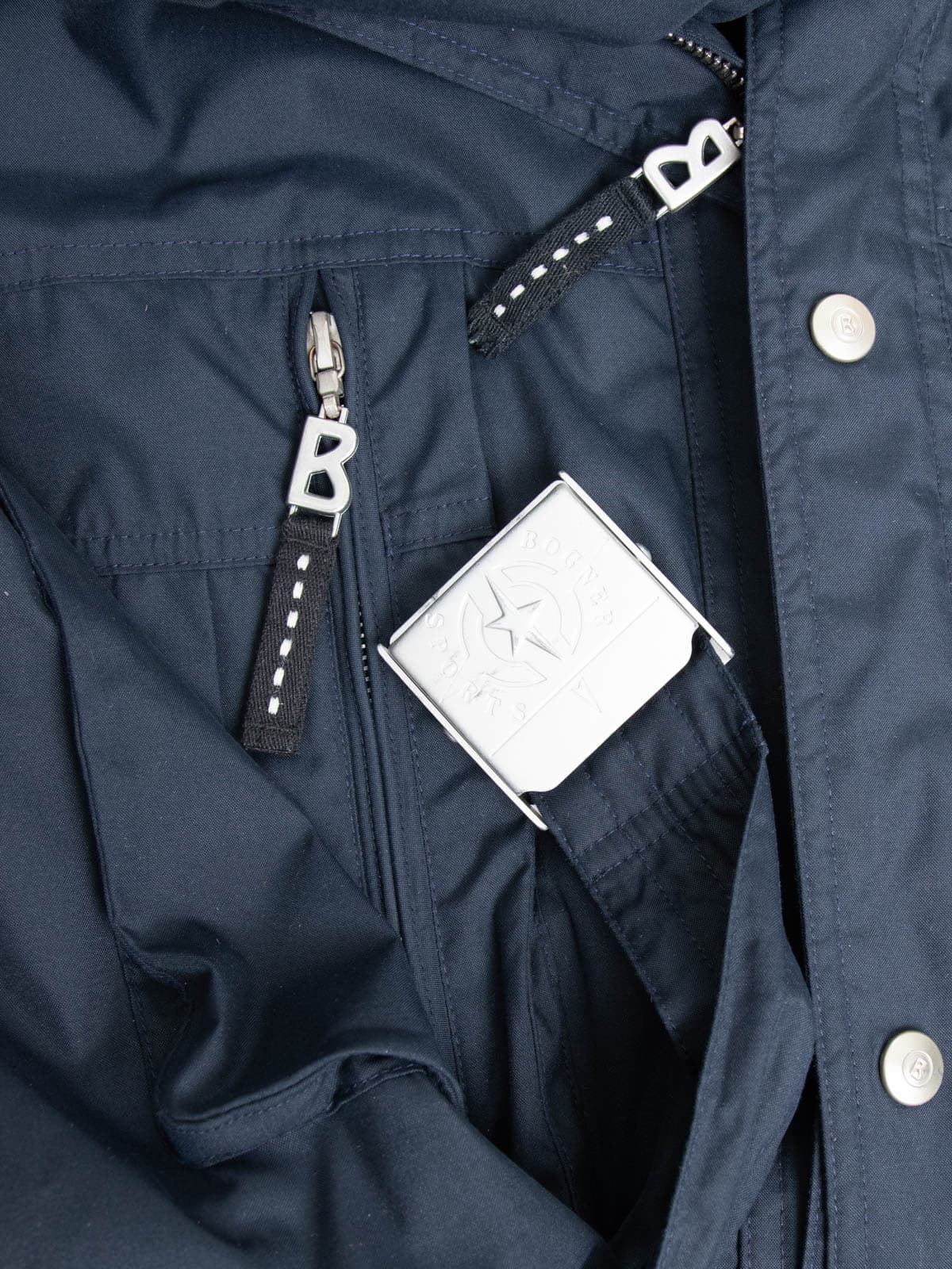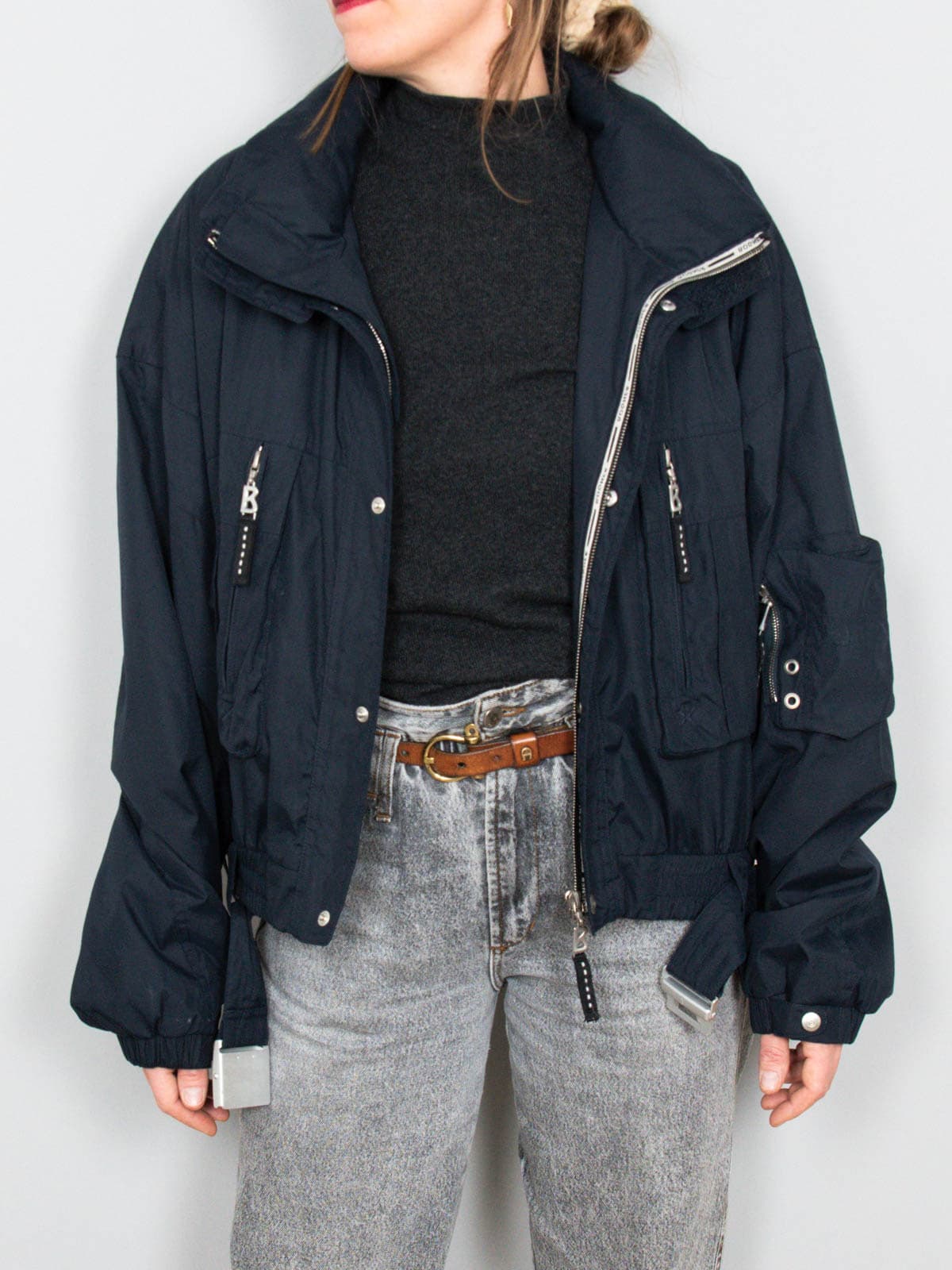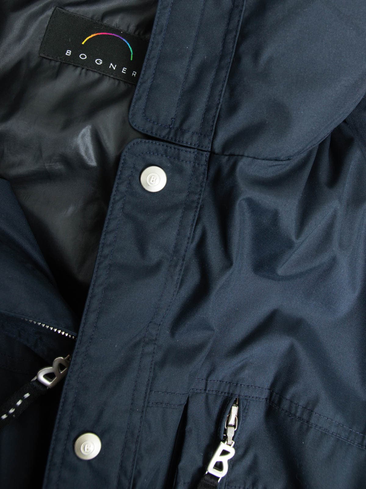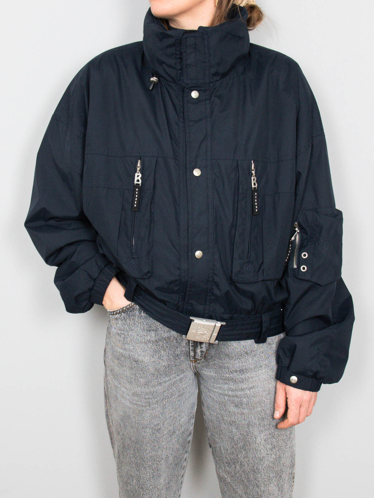 Beschreibung: 1932 wurde das luxuriöse Modelabel Bogner aus Leidenschaft für den Wintersport von Willy Bogner in München gegründet und verzückt seither mit seinen hochwertigen Stücken. So auch mit dieser hinreißenden und sportlichen Jacke von mit ihrem kurzen, aber dafür weiten Schnitt. Verschließbar mit Reißverschluss, Druckknöpfen plus Schnalle in der Taille. Ausgestattet mit zwei Reißverschlusstaschen sowie einer Kapuze im Kragen und einer kleinen Labelstickerei in Form eines B im Nacken.