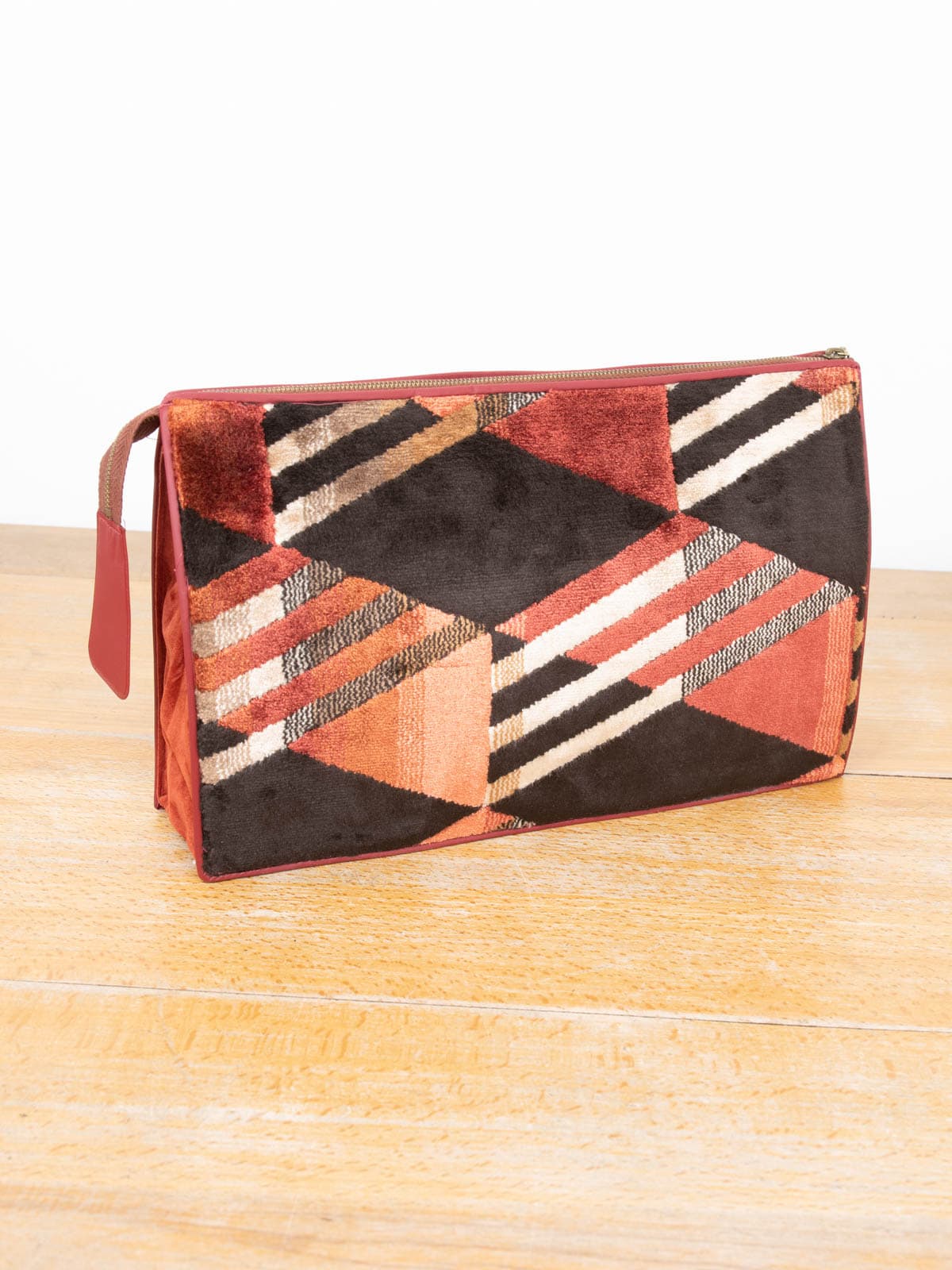 Beschreibung: Ein Hingucker eines Kulturbeutels aus den 70er Jahren! Verschließbar mit einem Reißverschluss, neben dem großen Fach erwarten dich vier weitere kleine Fächer.