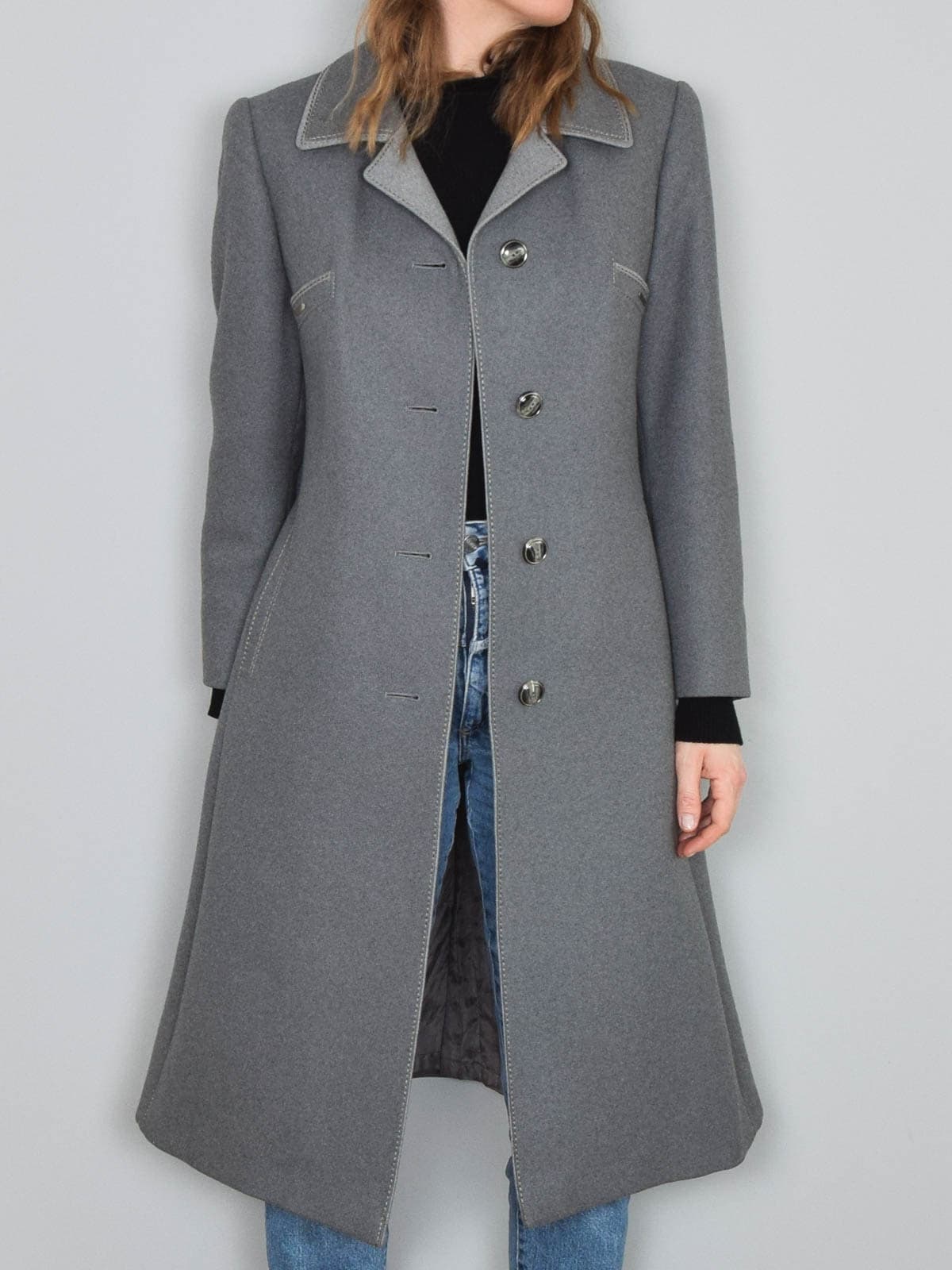 Beschreibung: Zeitloser und wunderschöner Vintage Mantel aus den 70er Jahren. Das Originalstück ist in A-Linie geschnitten und aus reiner Wolle gefertigt. Ausgestattet mit einem dazugehörigen Gürtel und zwei Seitentaschen.