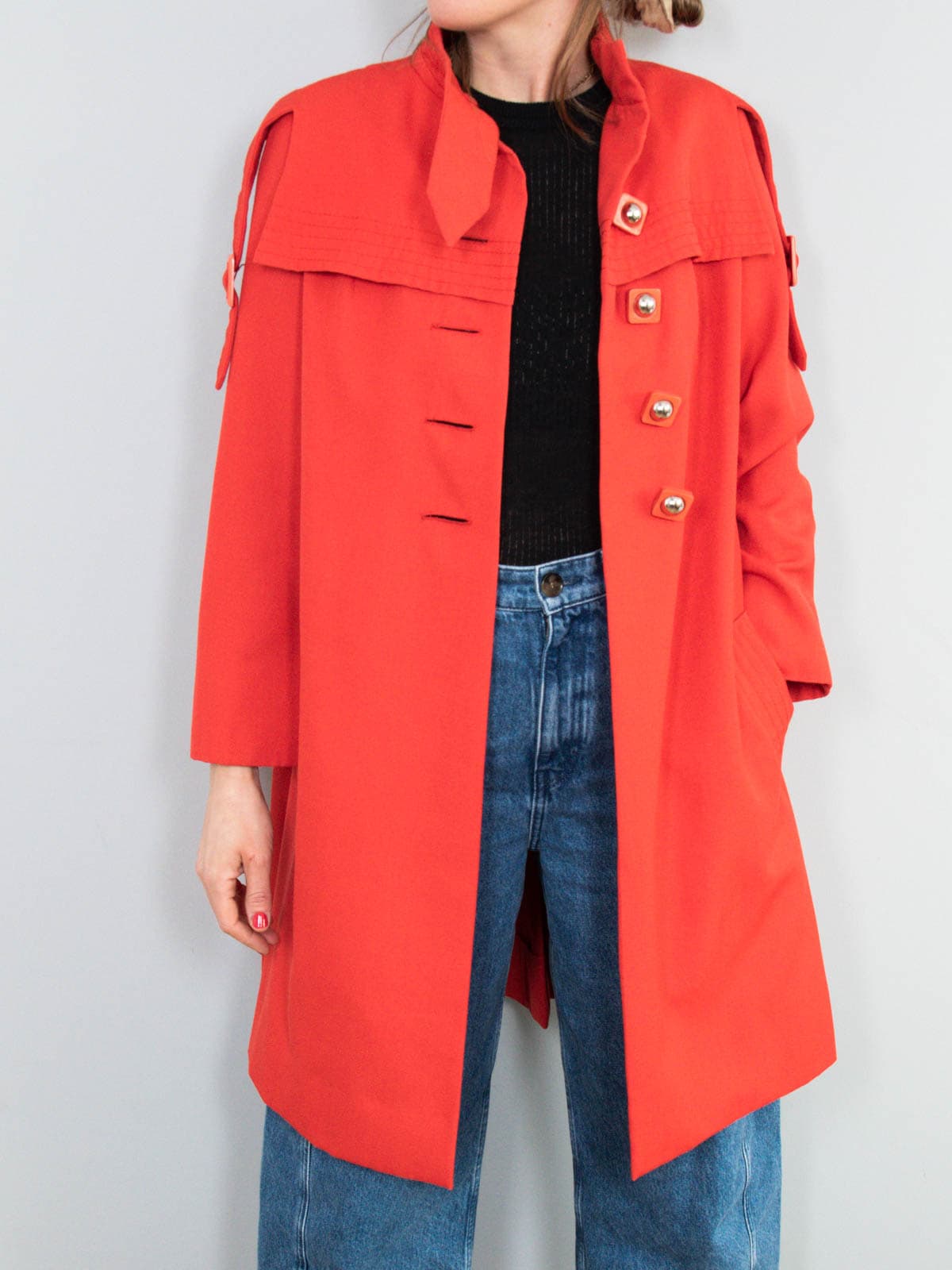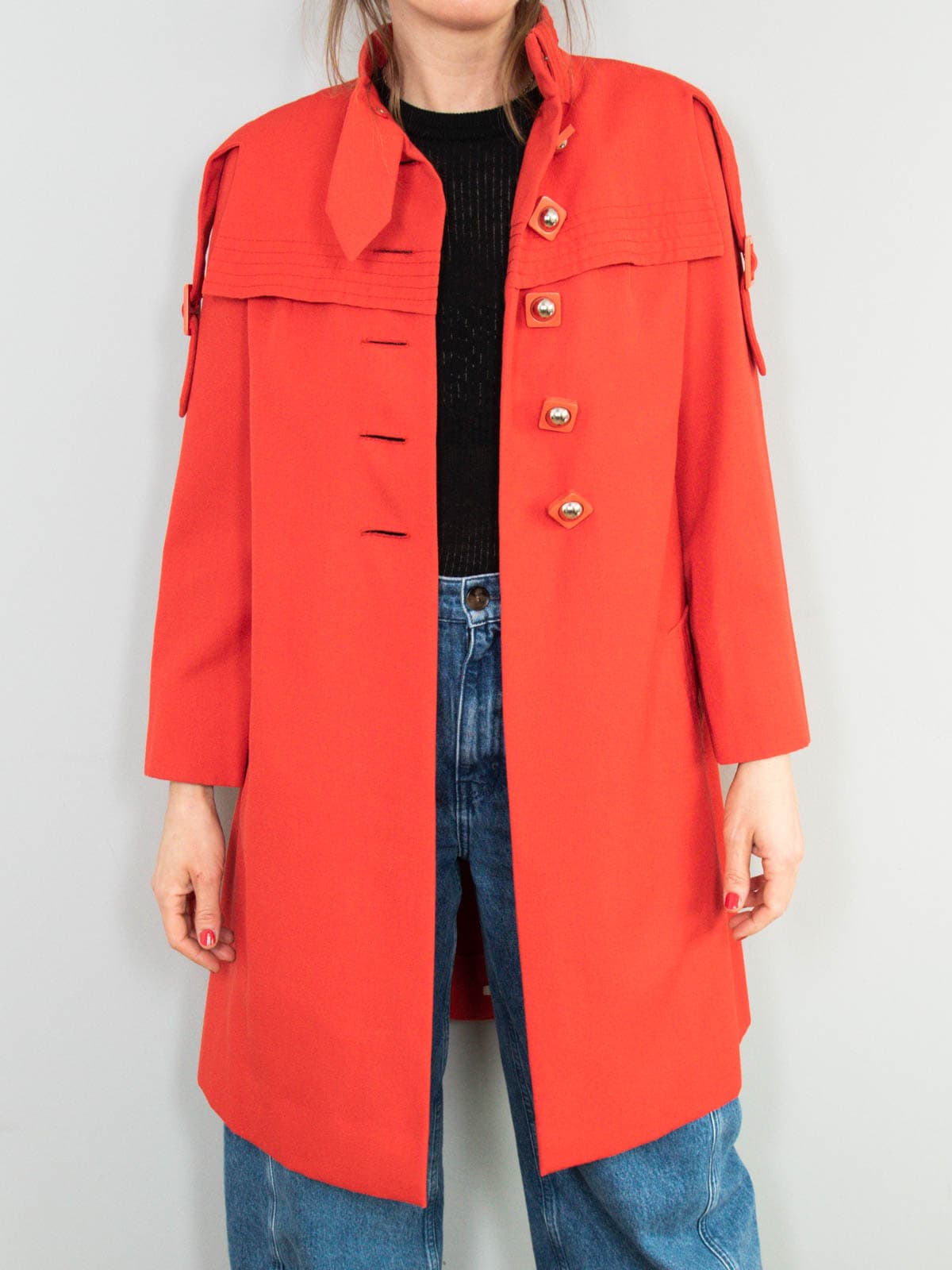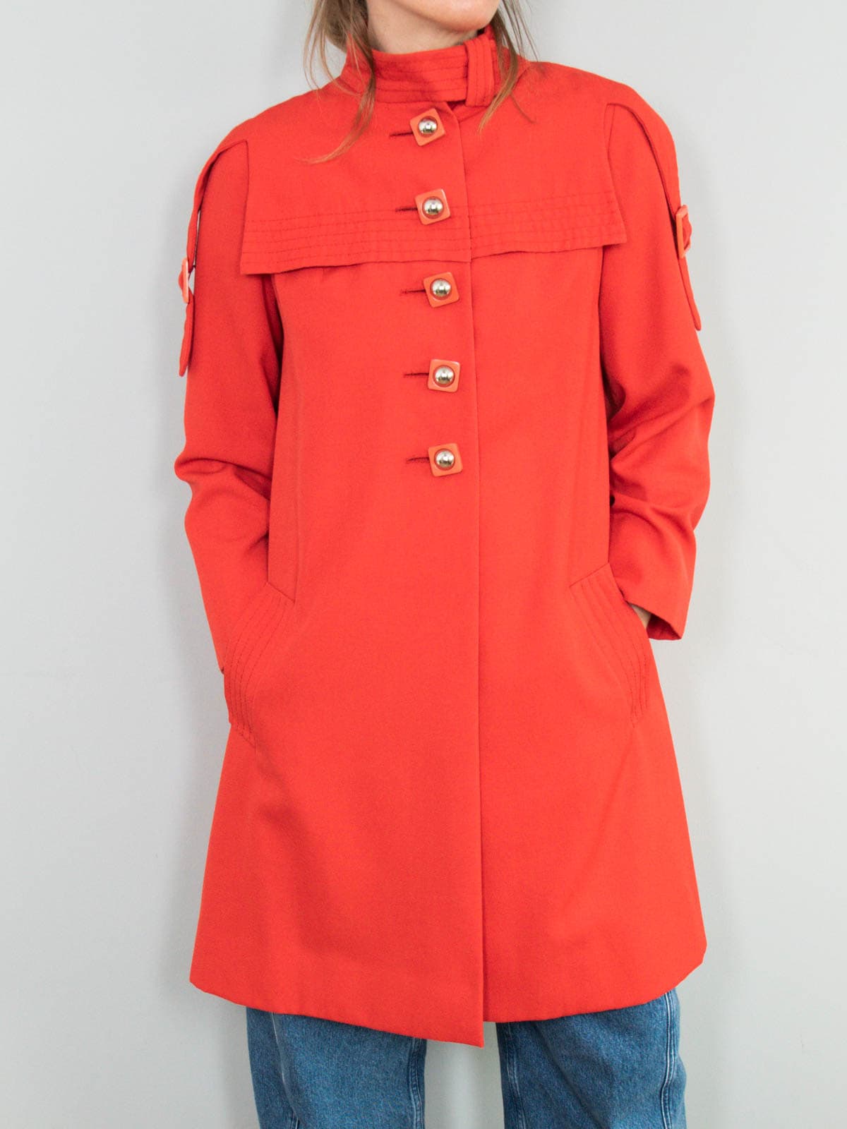Beschreibung: Hinreißender Vintage Mantel aus den 70er Jahren in Knallrot.