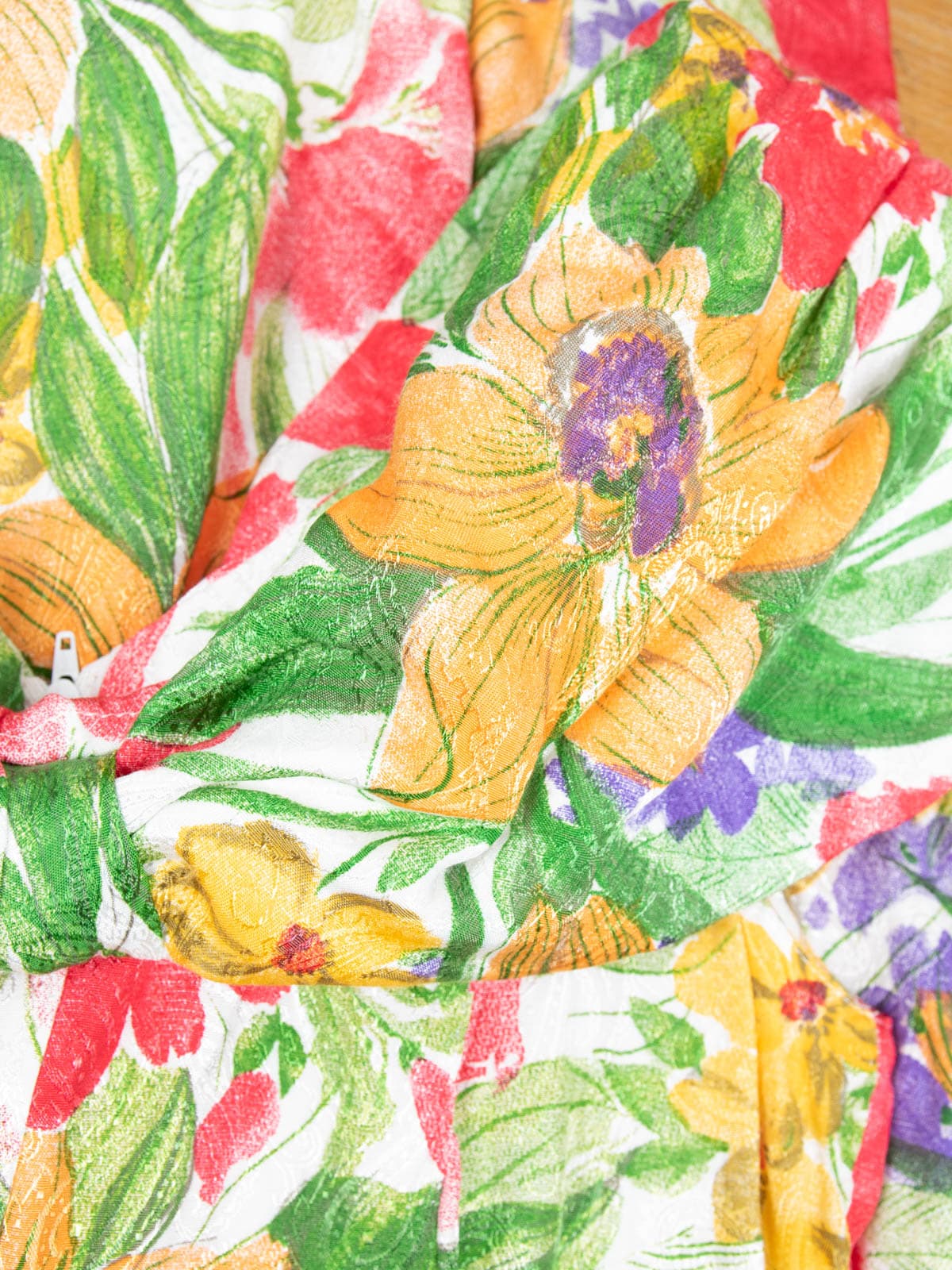 Beschreibung: Festliches Vintage Sommerkleid. Der Ärmelausschnitt ist verstärkt, Verschließbar ist das Blumenkleid mit einem Reißverschluss am Rücken.