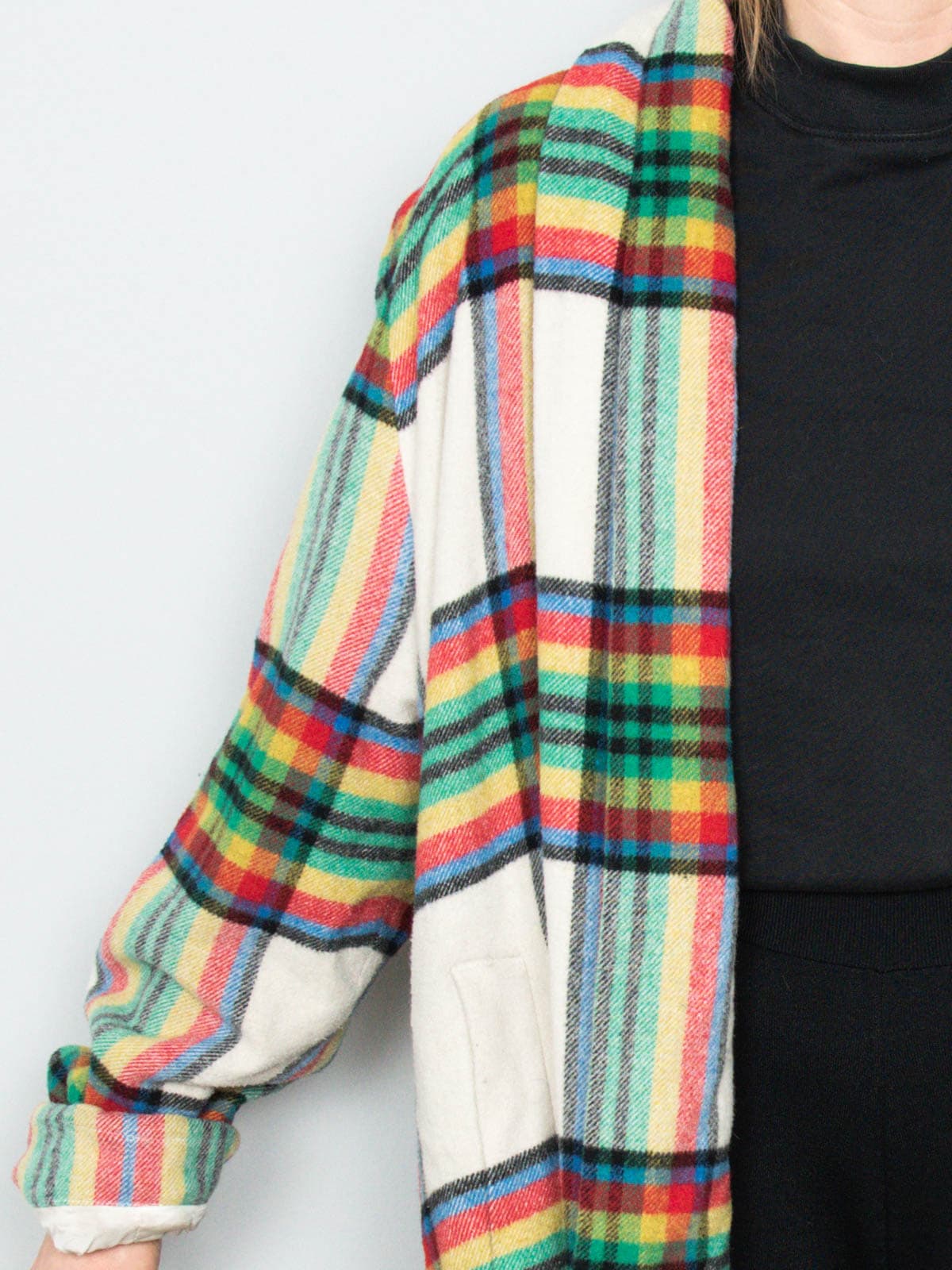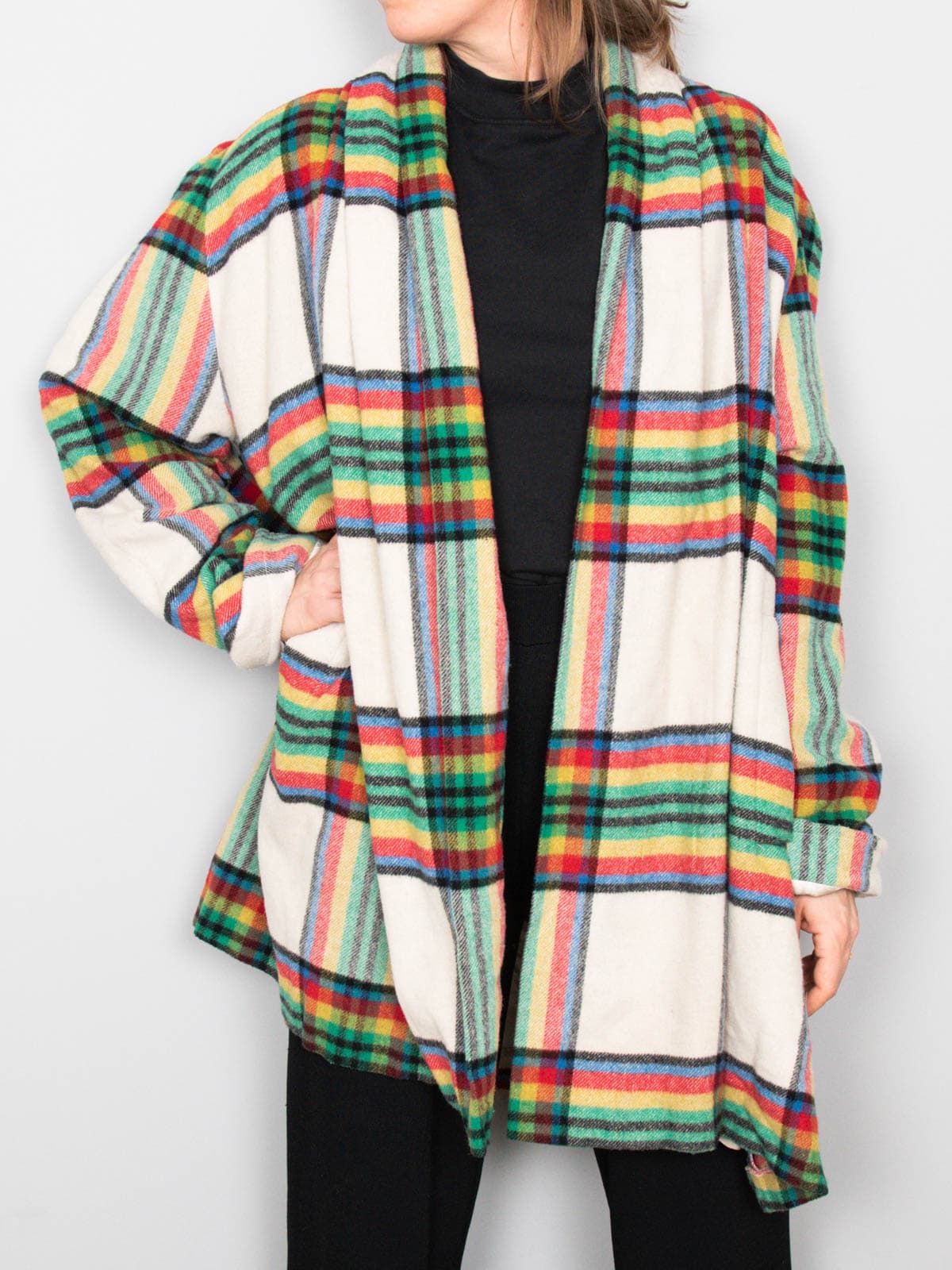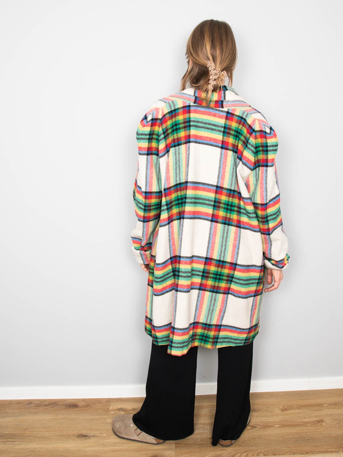 Beschreibung: Hinreißender karierter Vintage Wollmantel im Oversize Schnitt. An der Schulterpartie ist der Mantel weiter geschnitten. Ausgestattet ist er mit zwei Taschen und der Mantel ist nicht zu verschließen. Der ideale Begleiter für die Übergangstemperaturen.
