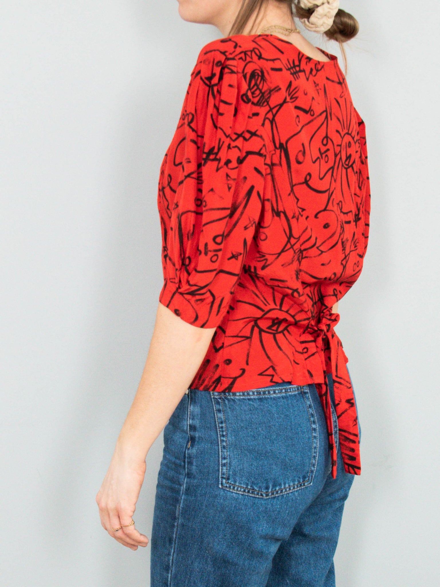 Beschreibung: Tolle Vintage Bluse mit integriertem Taillenband im Rücken.