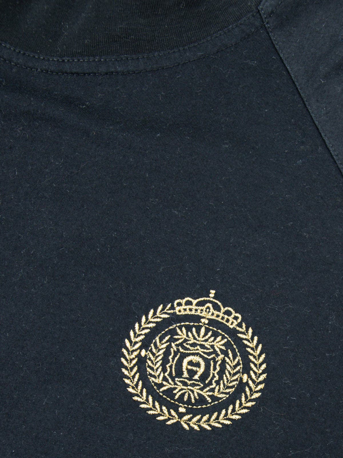 Beschreibung: Das Modeunternehmen Aigner wurde 1950 in New York von Etienne Aigner gegründet. Nach dem Verkauf von der Etienne Aigner GmbH an einen Münchener Geschäftsmann erlangte das Label in den 60er und 70er Jahren Kultstatus. Die Luxusartikel des Labels Aigner gelten als elegante und zugleich klassisch, zeitlose Alltagshelden mit höchster Qualität, die eine lange Lebendauer versprechen. So auch dieses schwarze T-Shirt mit goldener Stickerei auf der linken Front.