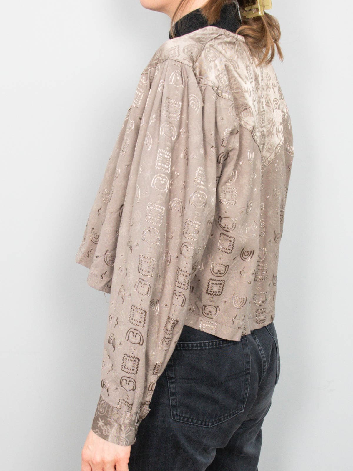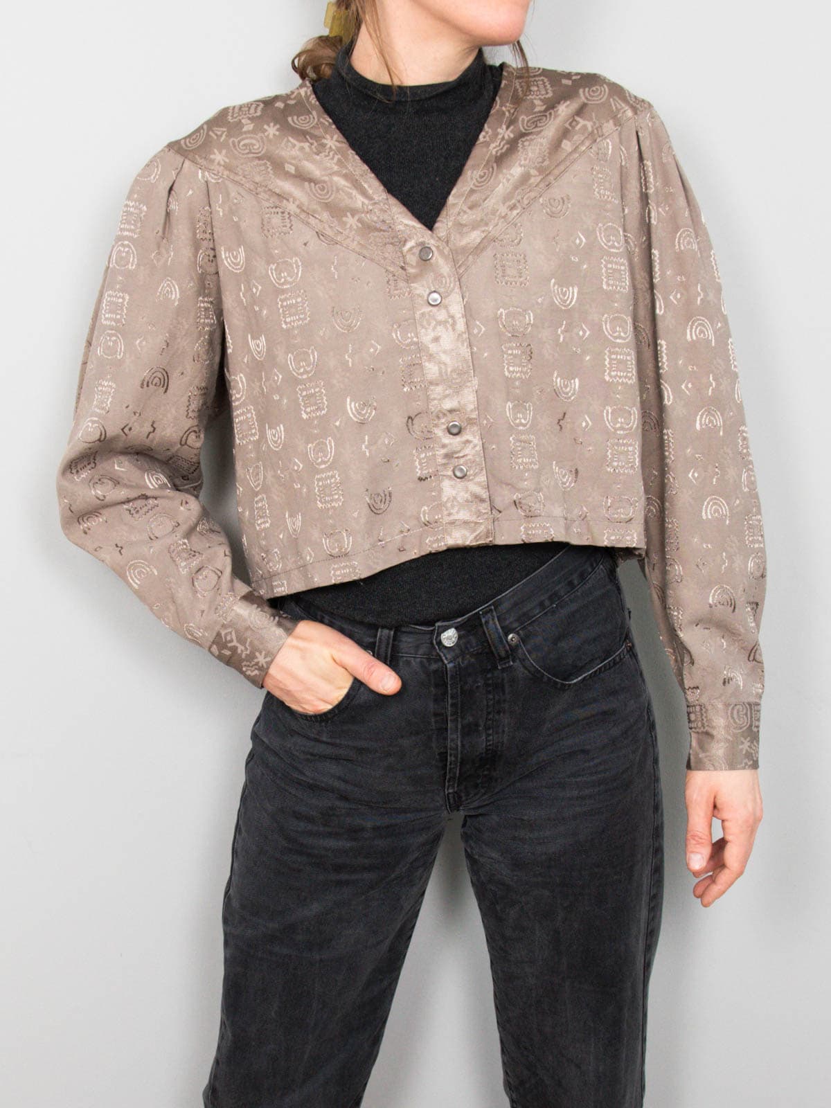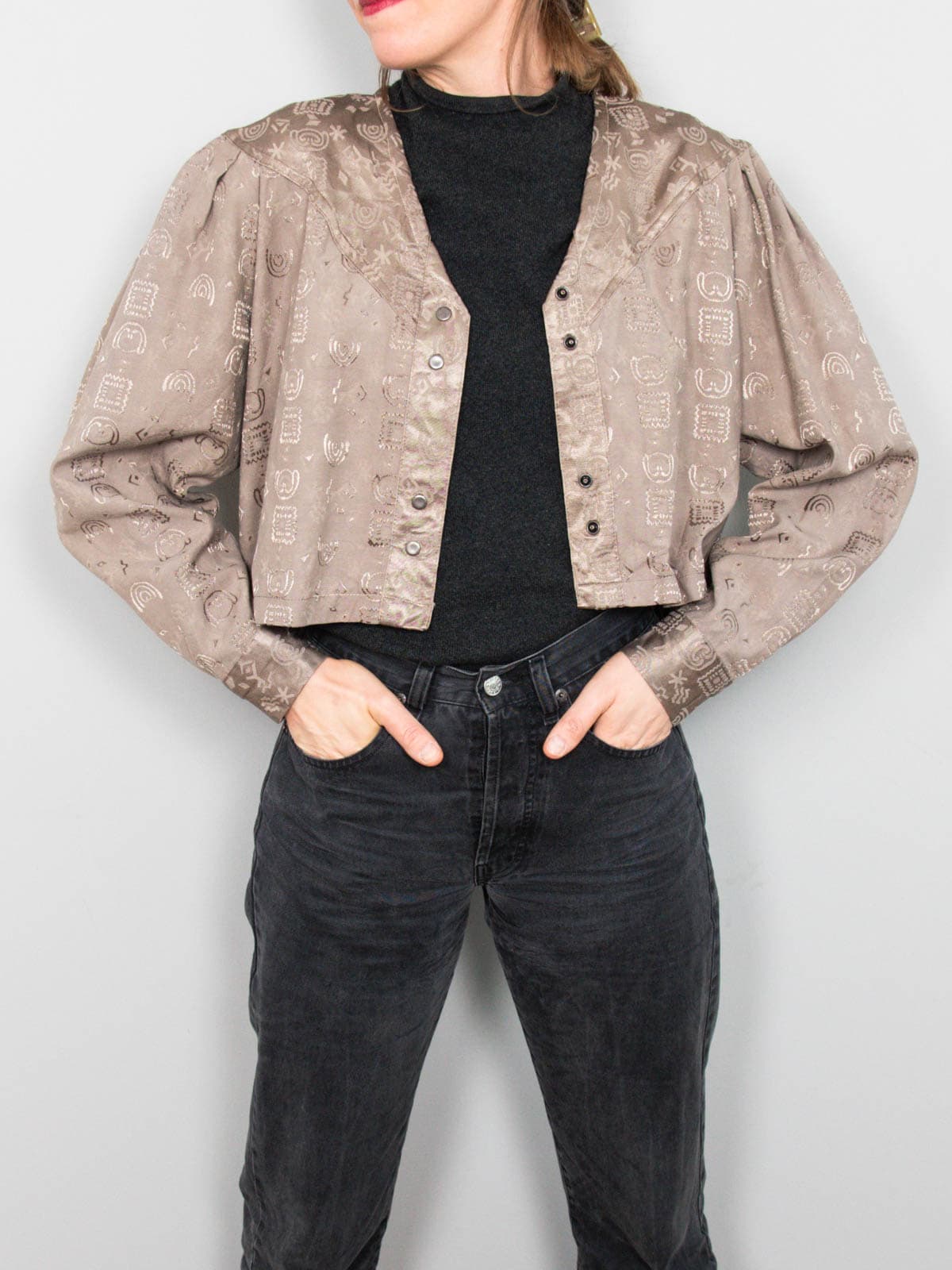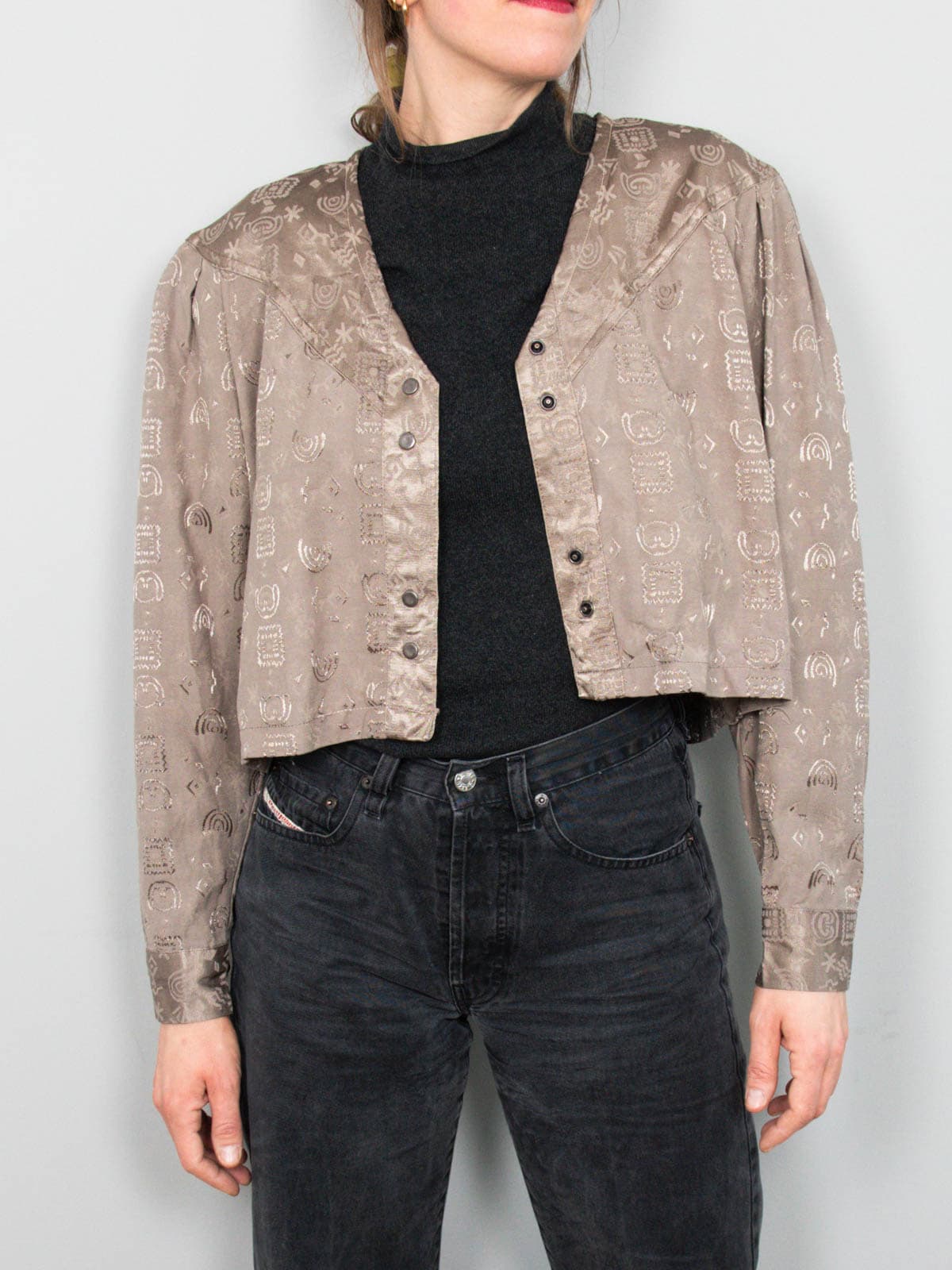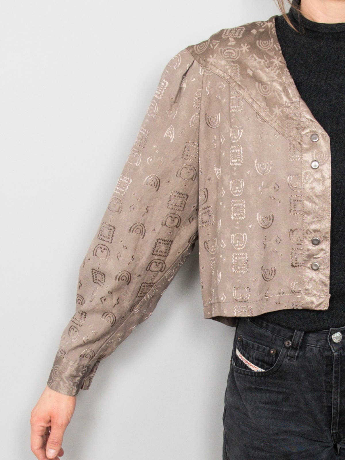 Beschreibung: Kurz geschnittenes und strukturiertes Blouson in schönem Schlammton. Verschließbar mit Druckknöpfen.