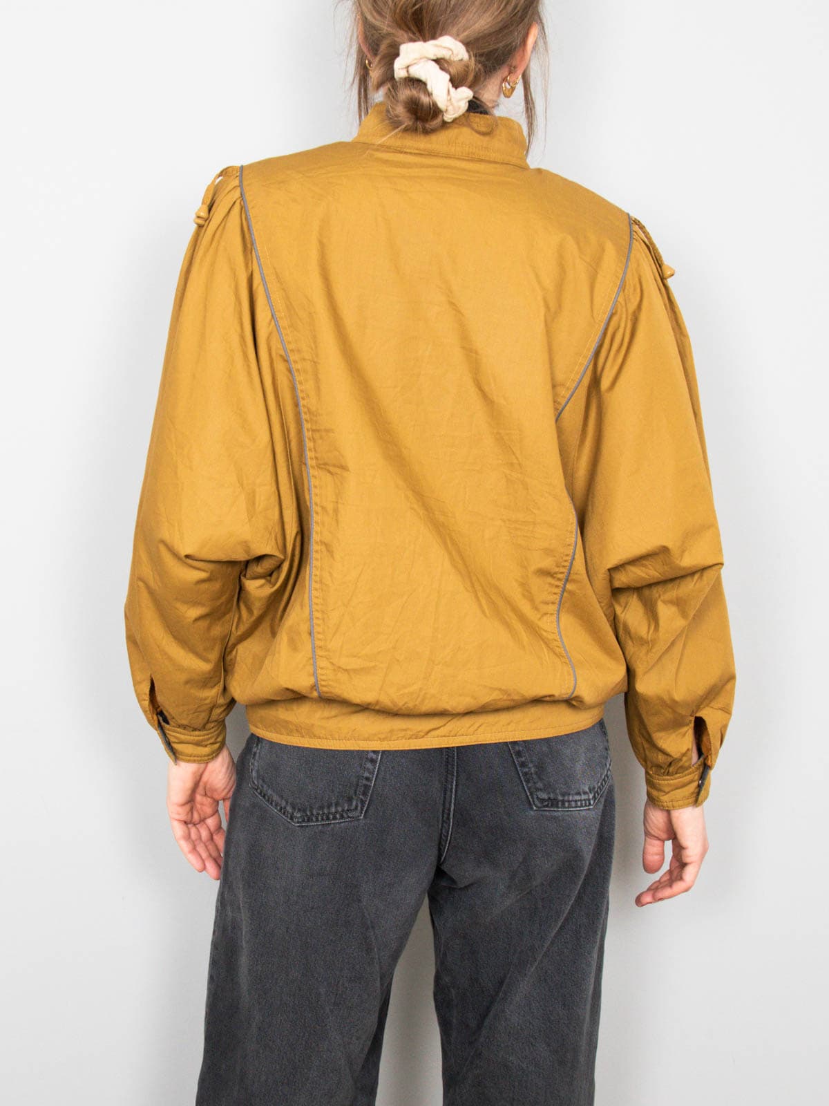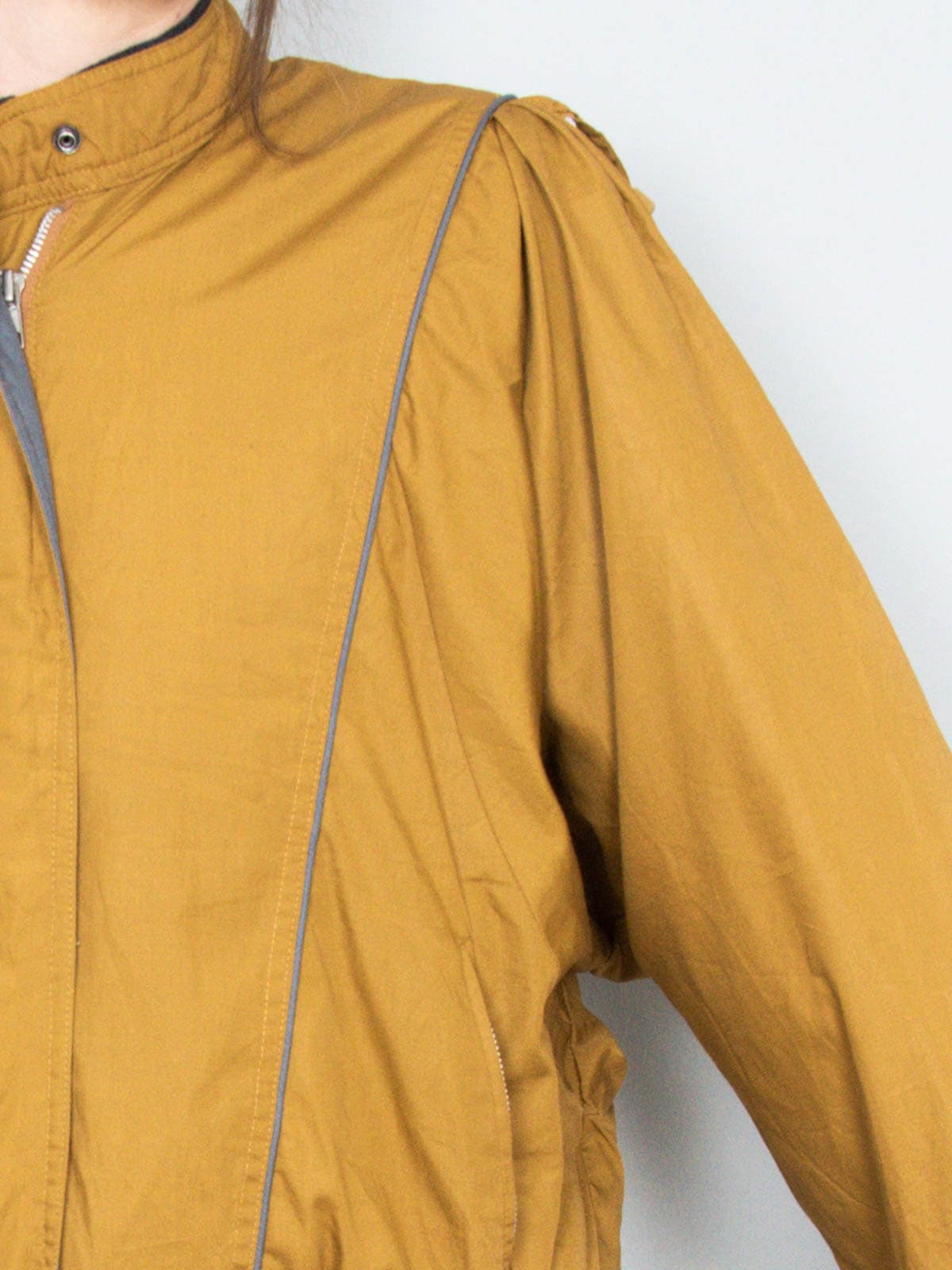 Beschreibung: Ausgefallenes Vintage Blouson mit Fledermausärmeln. Von innen ist das Blosuon gefüttert - eine ideale Jacke für den Übergang, ausgestattet mit zwei Seitentaschen.