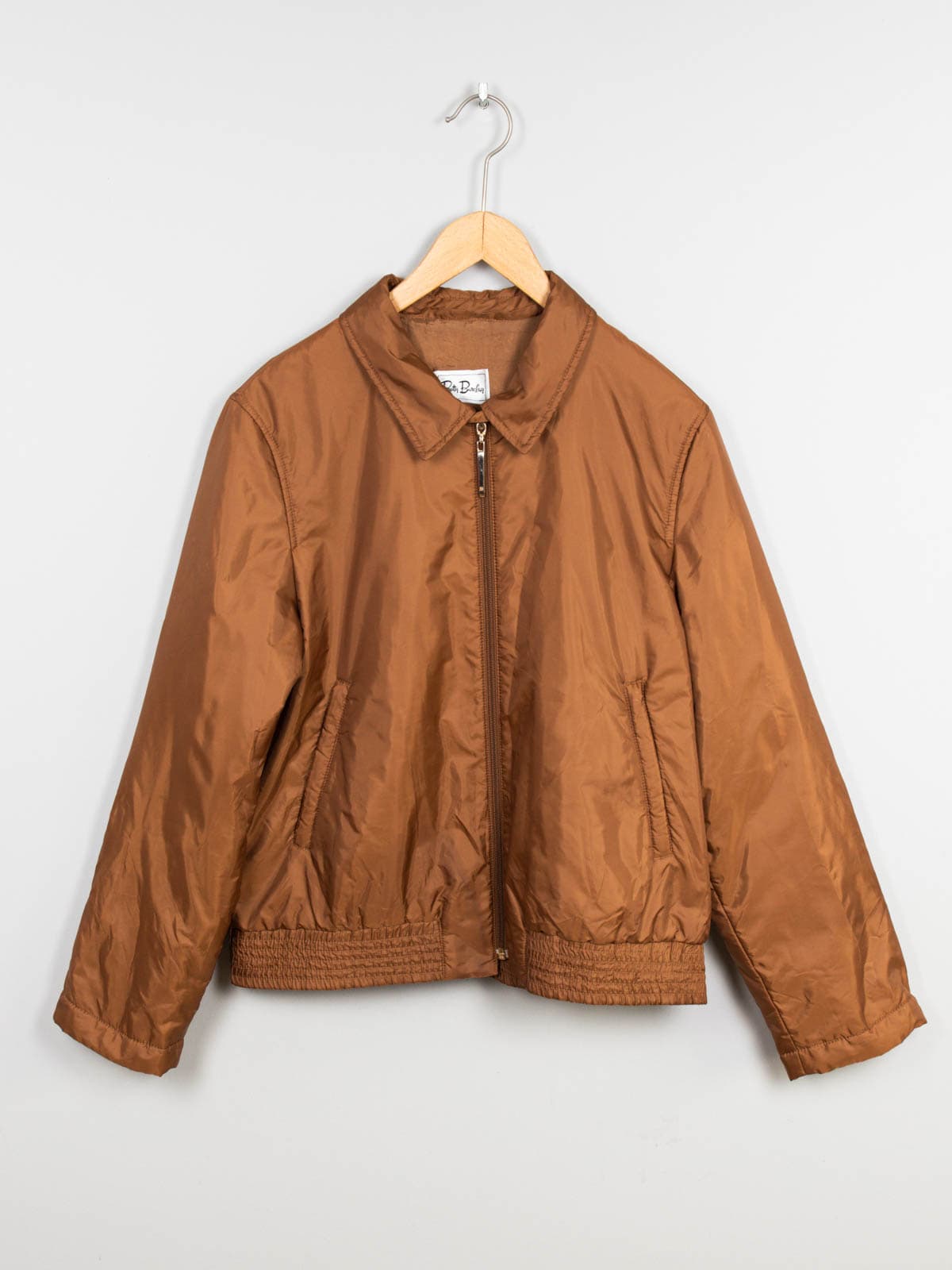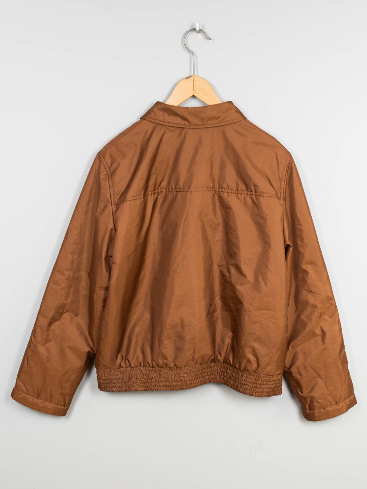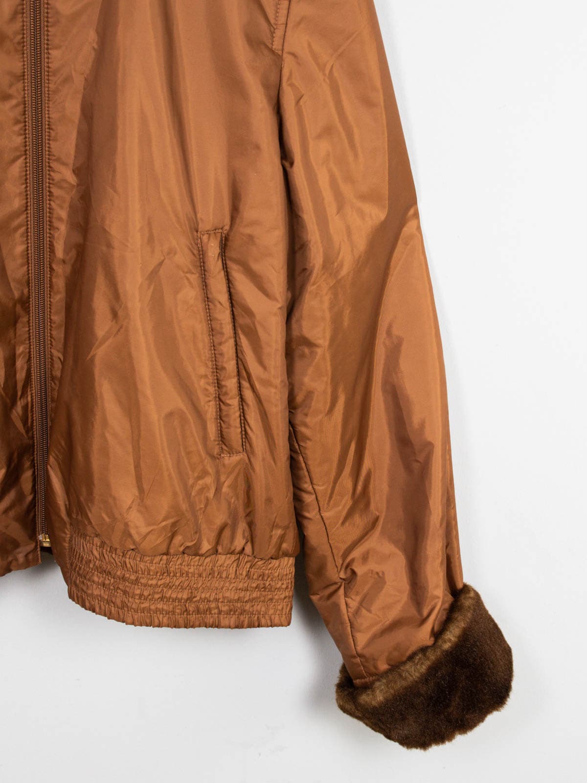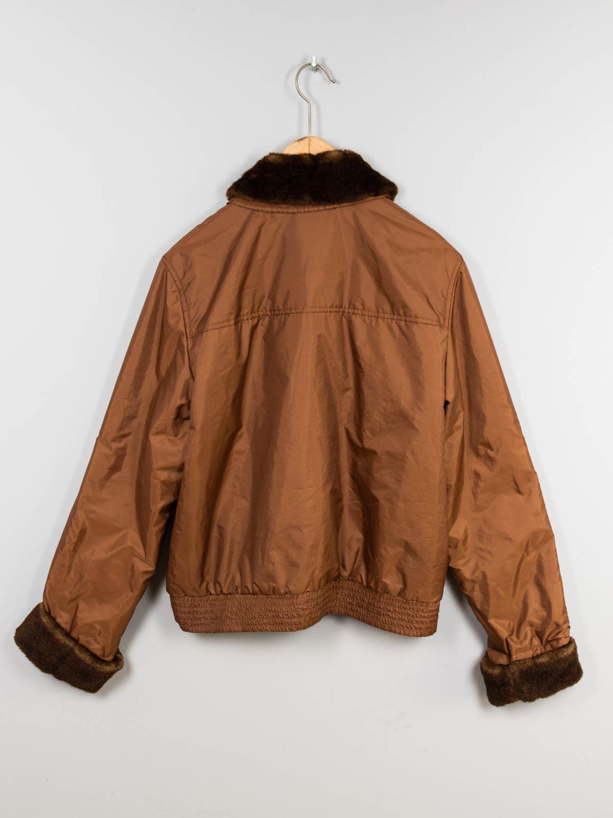 Beschreibung: Sehr coole und leichte Vintage Fliegerjacke in glänzendem Ocker. Das Webpelz Imitat an Kragen und Ärmeln lässt sich dank Reißverschluss bzw. Knöpfen abnehmen. Ausgestattet ist die Jacke mit zwei Reißverschlusstaschen.