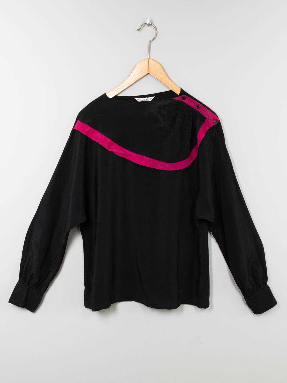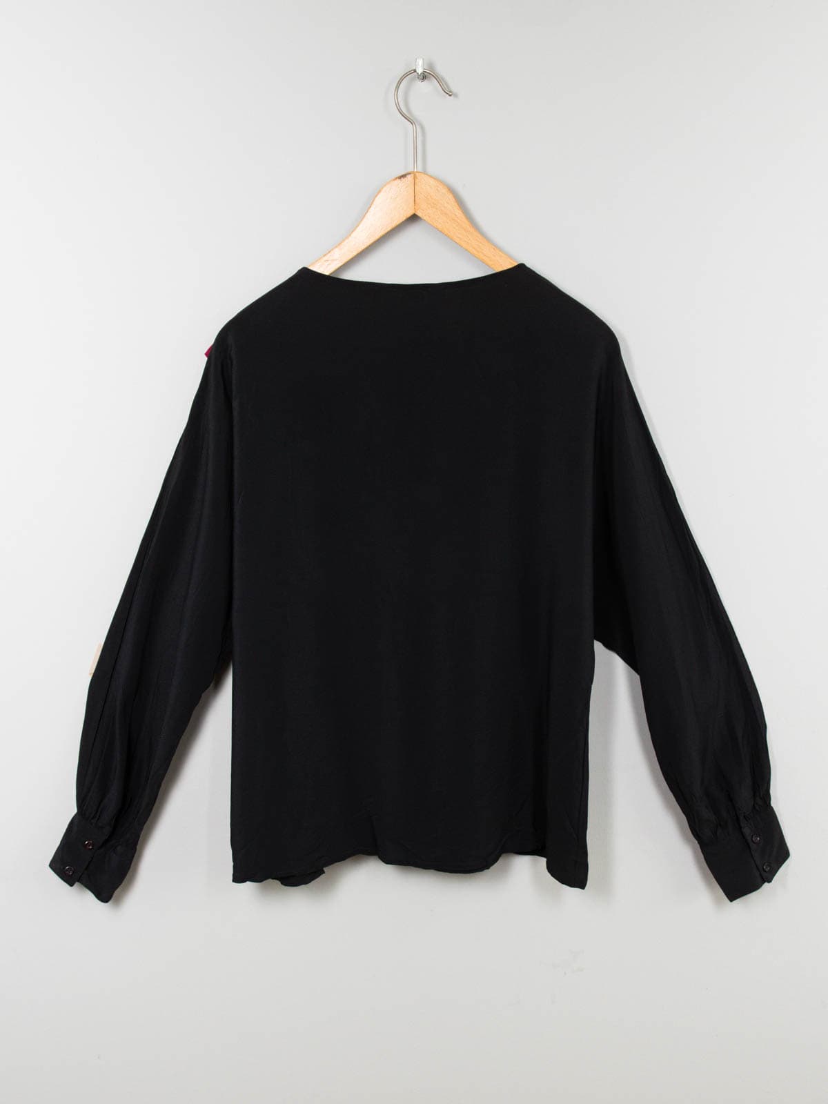 Beschreibung: Elegante Vintage Bluse aus Seidenmischung in Schwarz mit tollem Kragen.