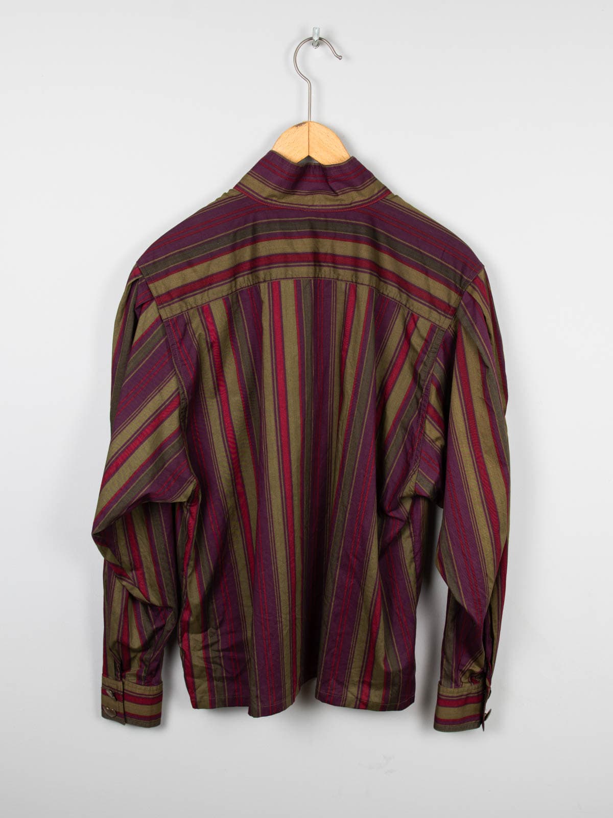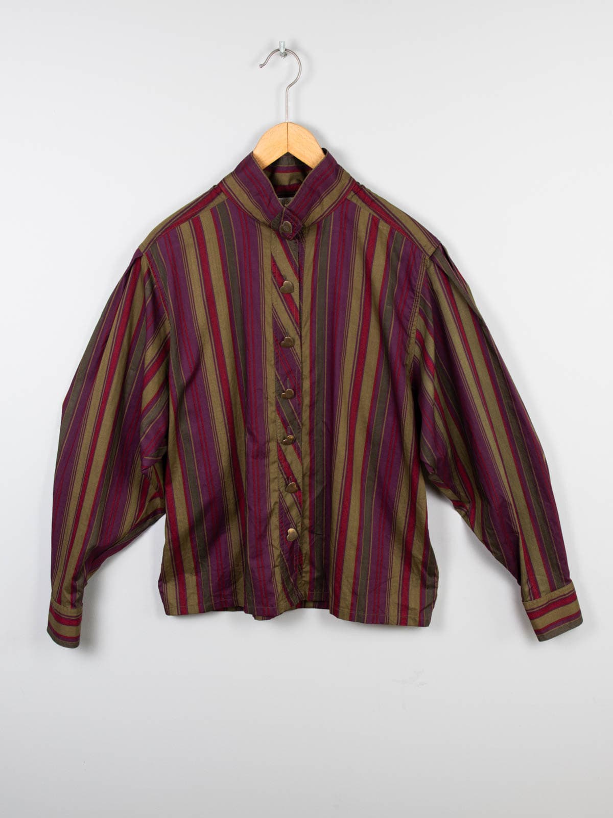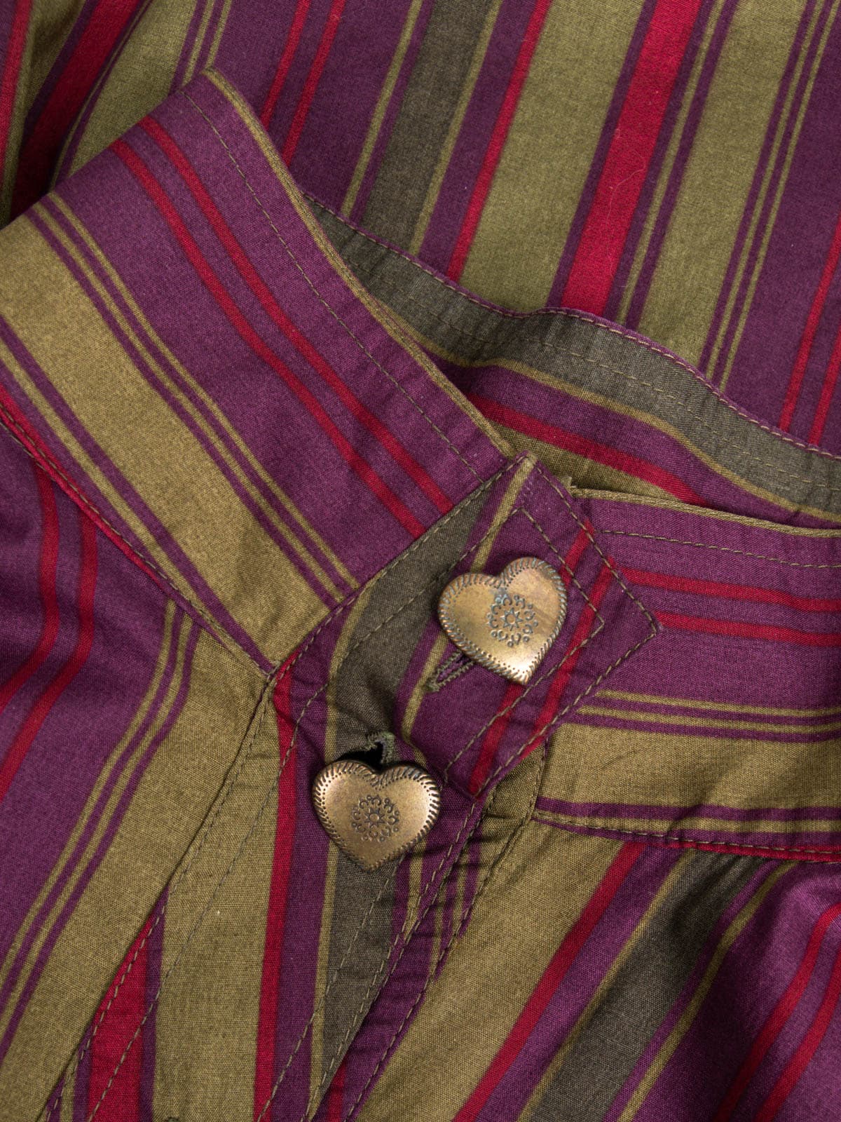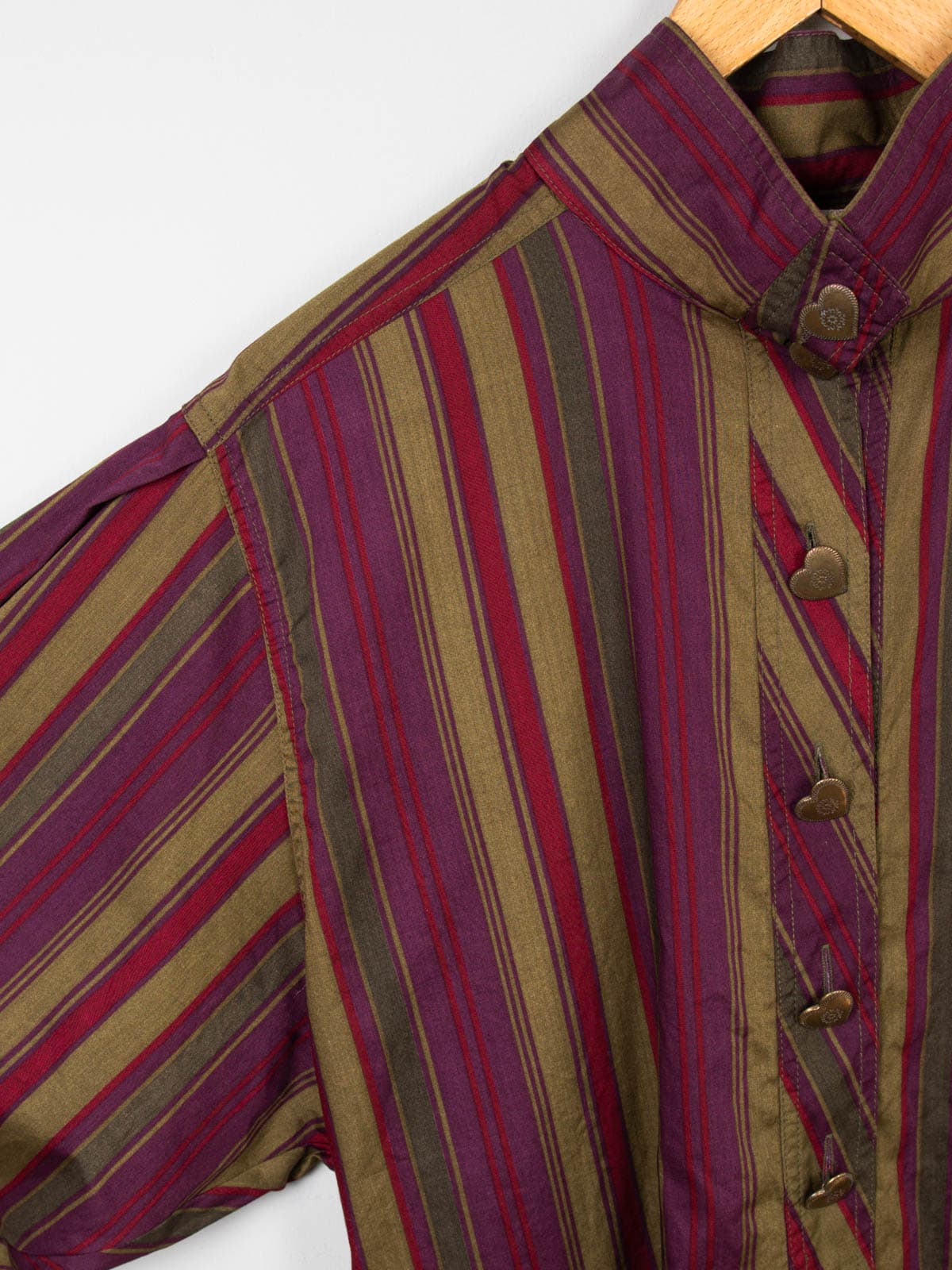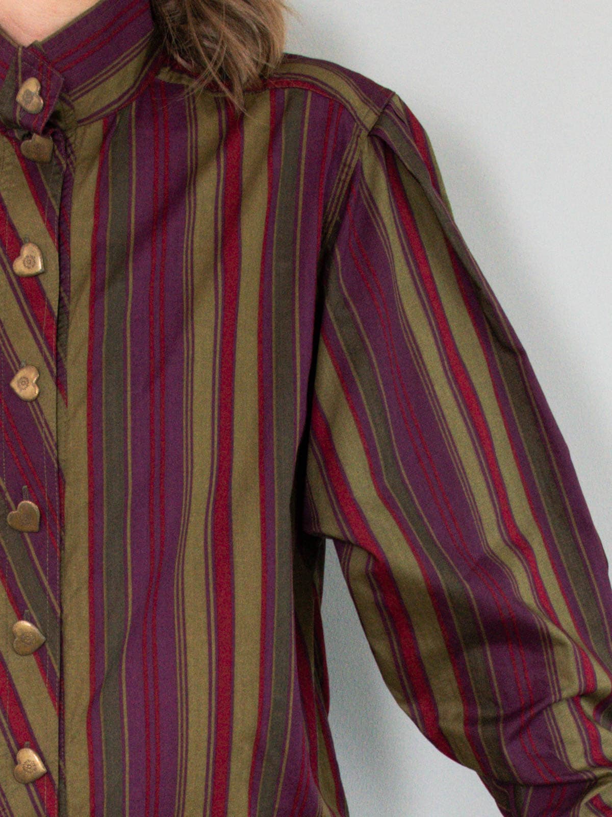 Beschreibung: Wunderschönste gestreifte Vintage Bluse mit Stehkragen und Herzknöpfen.