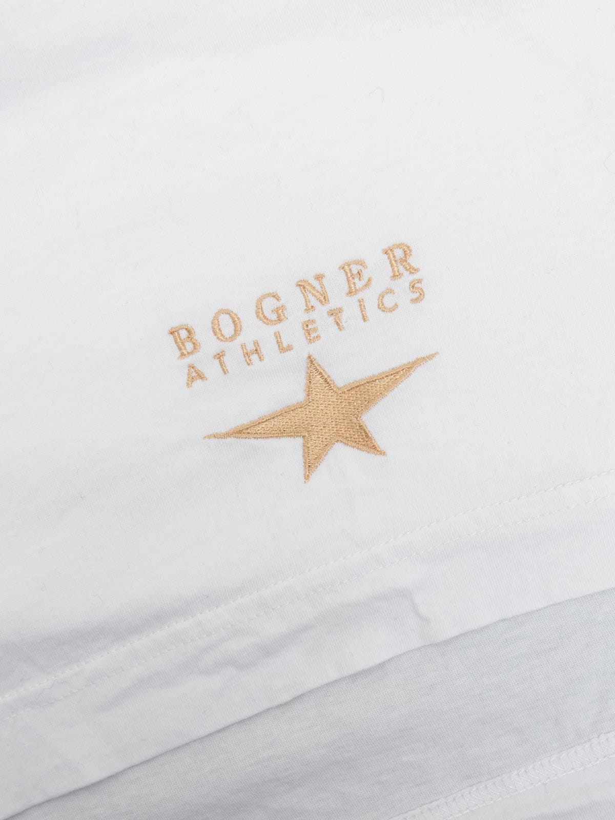 Beschreibung: 1932 wurde das luxuriöse Modelabel Bogner aus Leidenschaft für den Wintersport von Willy Bogner in München gegründet und verzückt seither mit seinen hochwertigen Stücken. Das lang geschnittene T-Shirt ist mit einem großen Tennismotiv am Rücken geschmückt und einer Label Stickerei auf der Vorderseite am Bund.