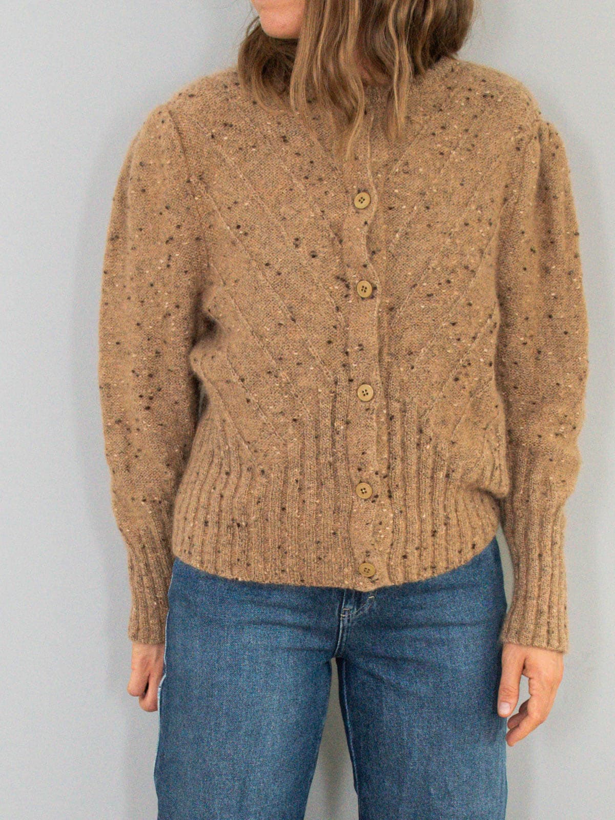 Beschreibung: Melierter Vintage Cardigan in Hellbraun.