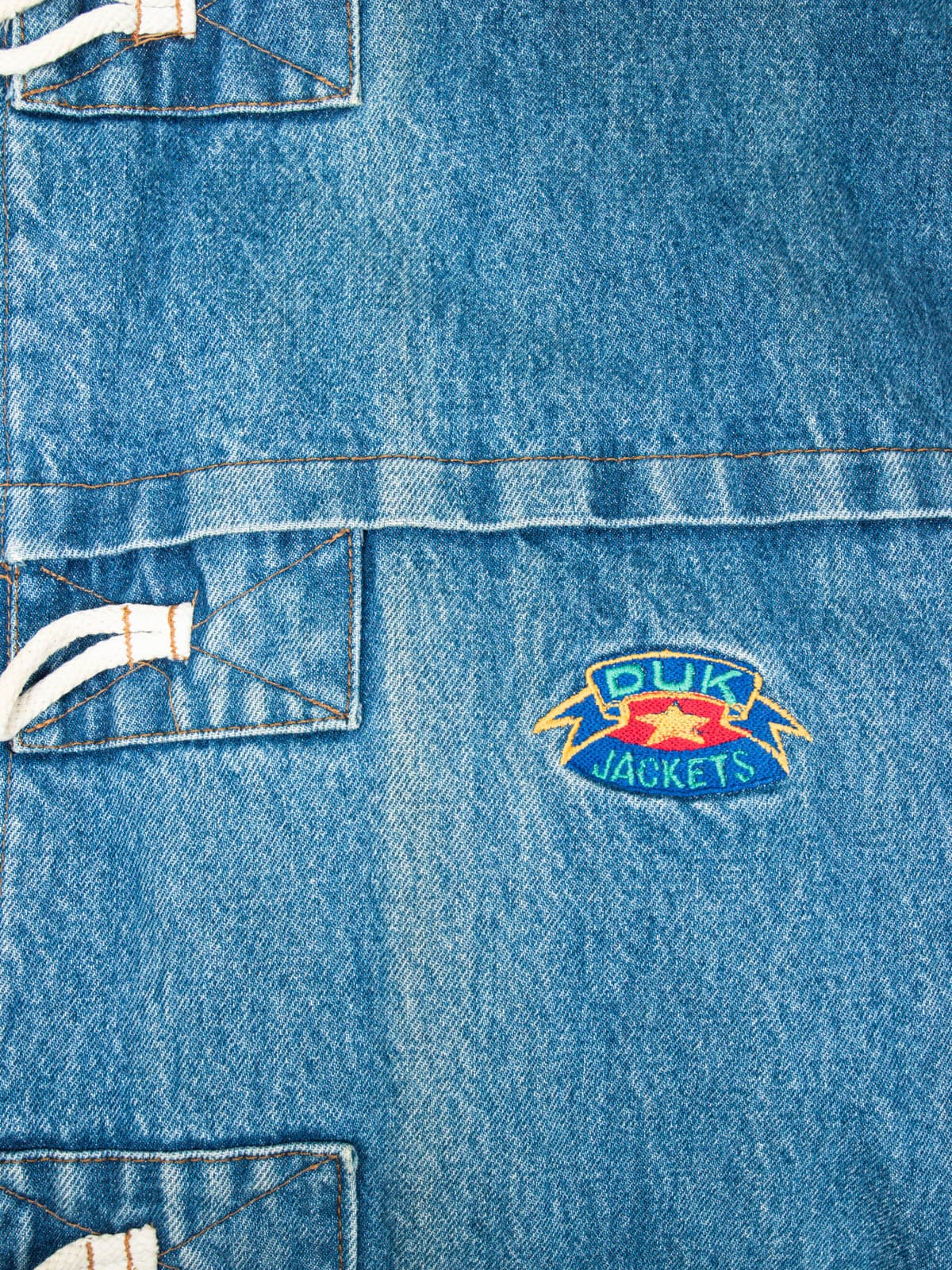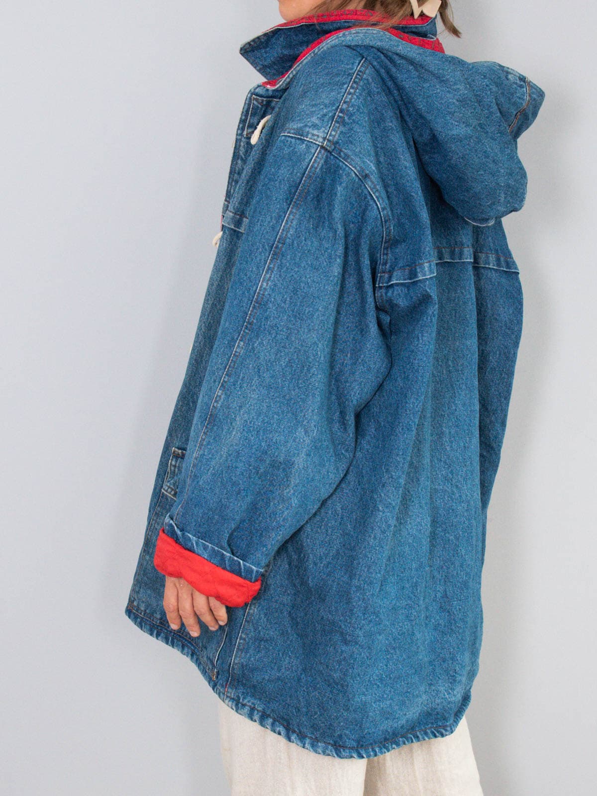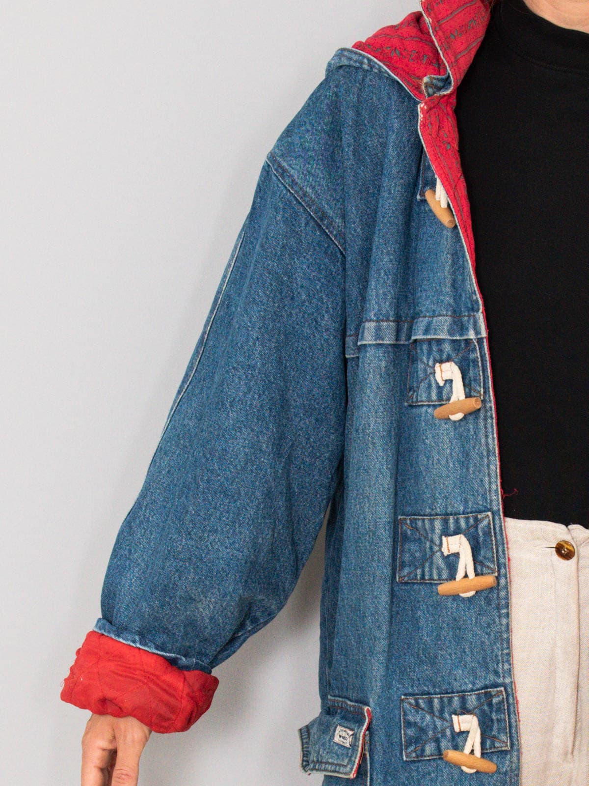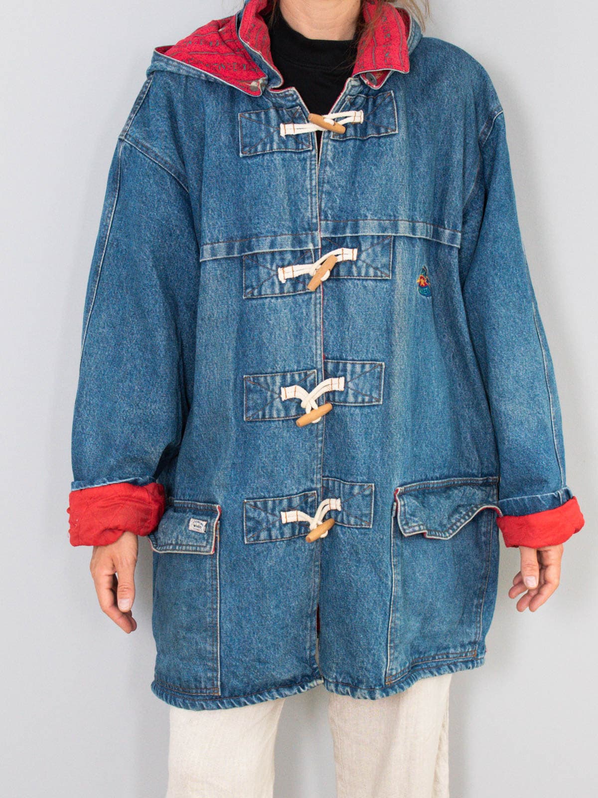 Beschreibung: Ausgefallener Vintage Dufflecoat - ein Original aus den 90er Jahren. Wunderbar ist der Jeansmantel auch oversized tragbar.