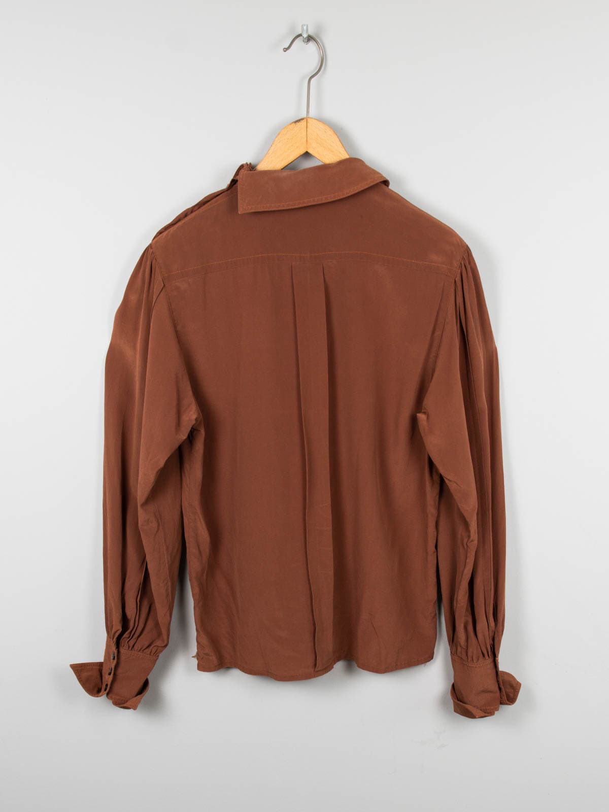 Beschreibung: 1976 wurde das Modelabel Escada in München als Luxus-Modemarke für exklusive Damenoberbekleidung gegründet und genau aus diesem Hause stammt diese hinreißende Vintage Seidenbluse. Verschließbar seitlich mit Knöpfen entlang des Kragens.