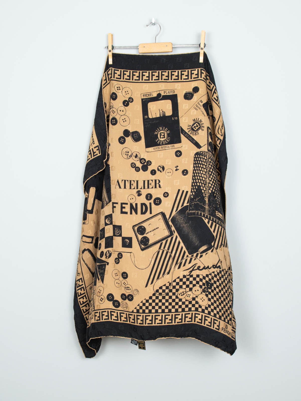 Beschreibung: Das italienische Luxuslabel Fendi ist insbesondere für seine Ledertaschen bekannt, begeistert Liebhaber für exklusive Designerstücke aber ebenso mit Accessoires wie diesem quadratischen Tuch aus reiner Seide.