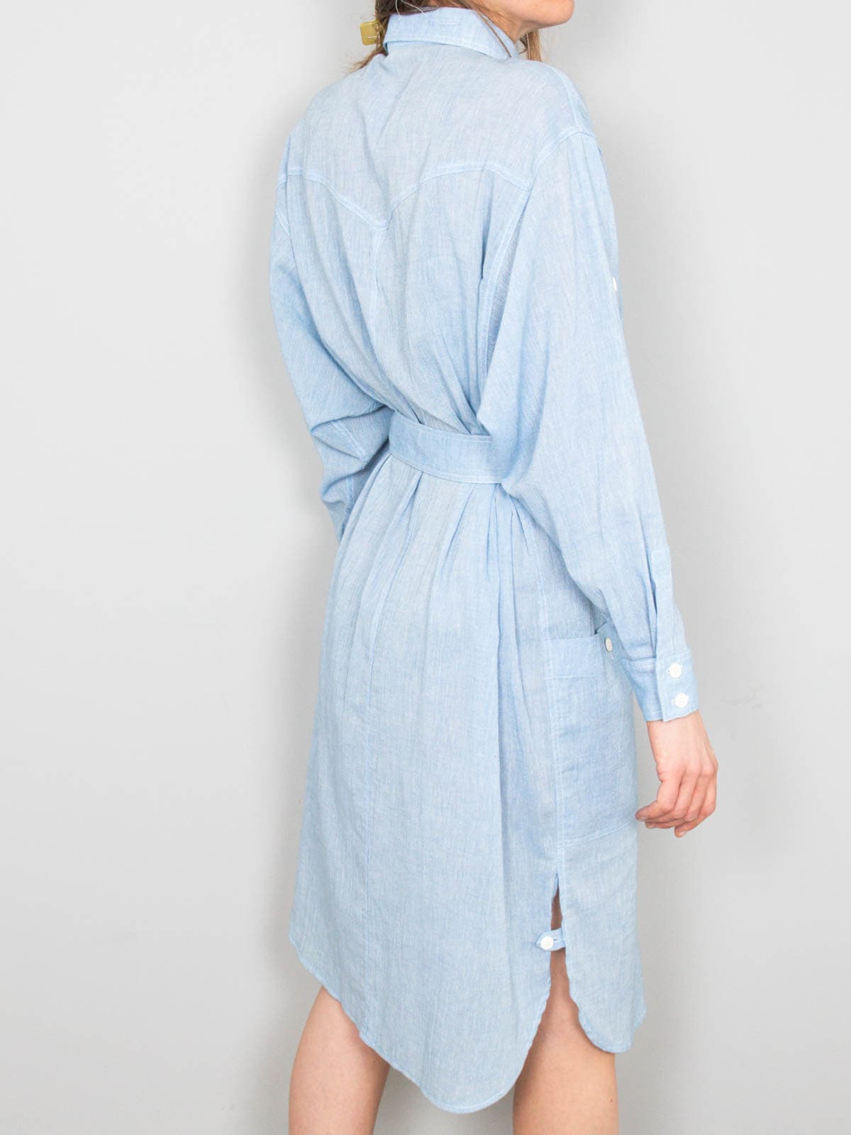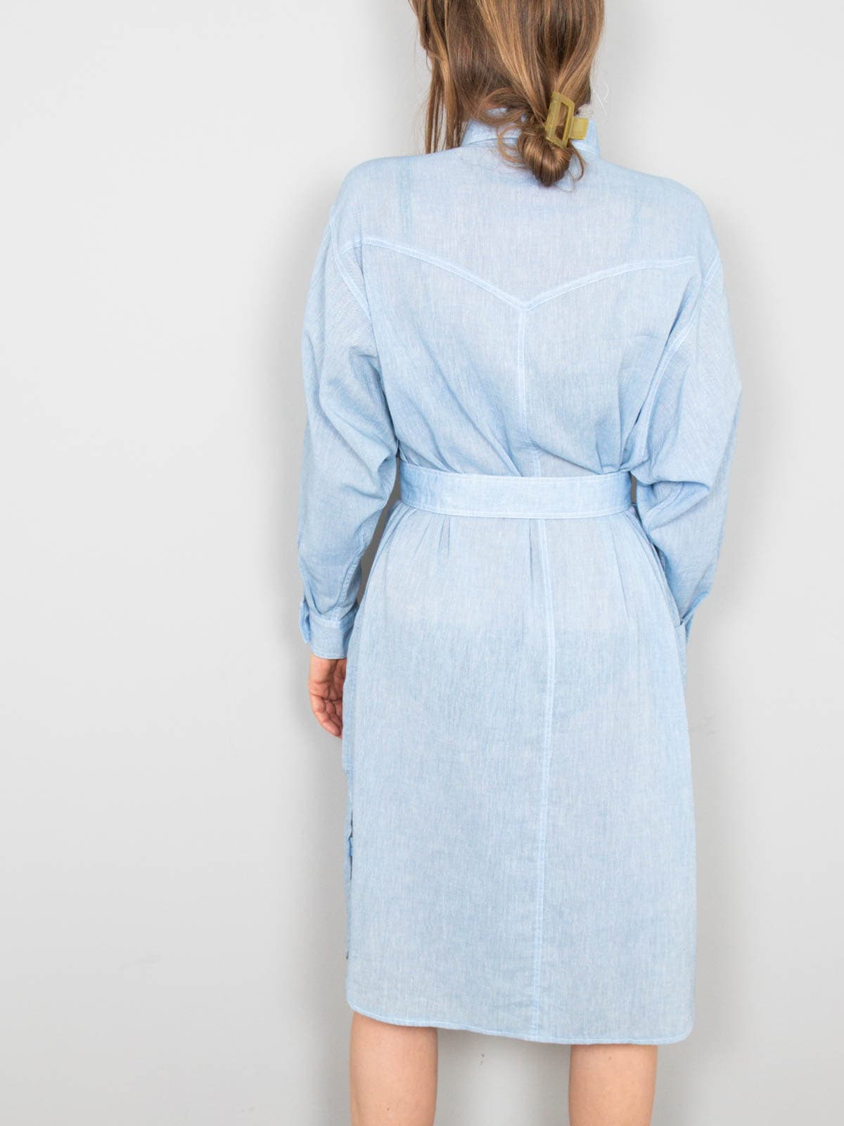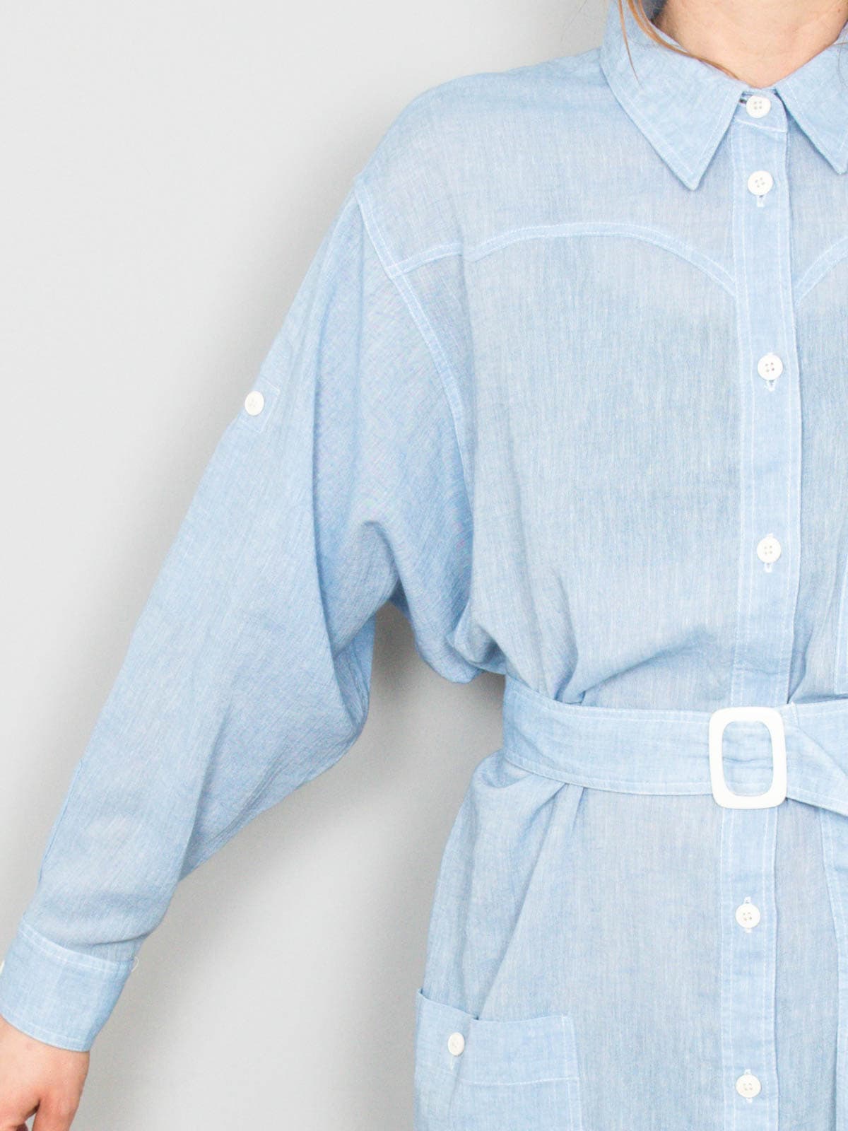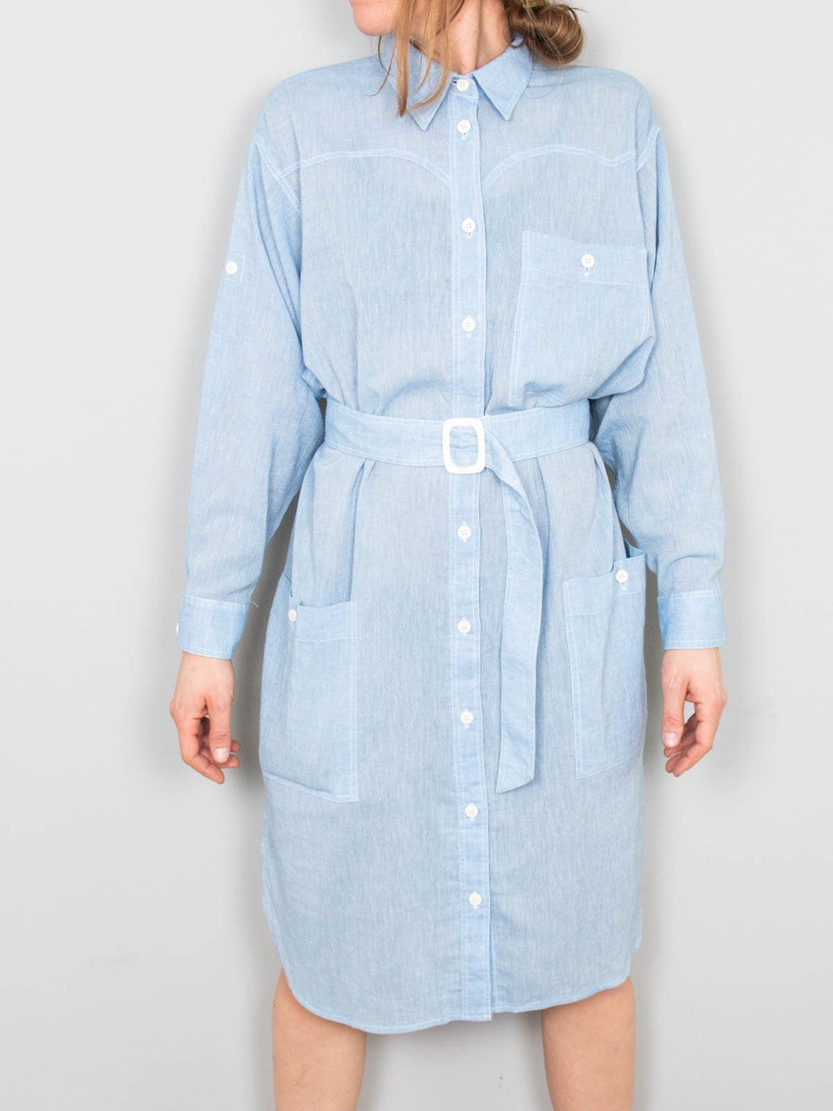 Beschreibung: Blaues Vintage Hemdkleid vom französischen Label Rodier. Gerade geschnitten und mit einem Gürtel dabei.