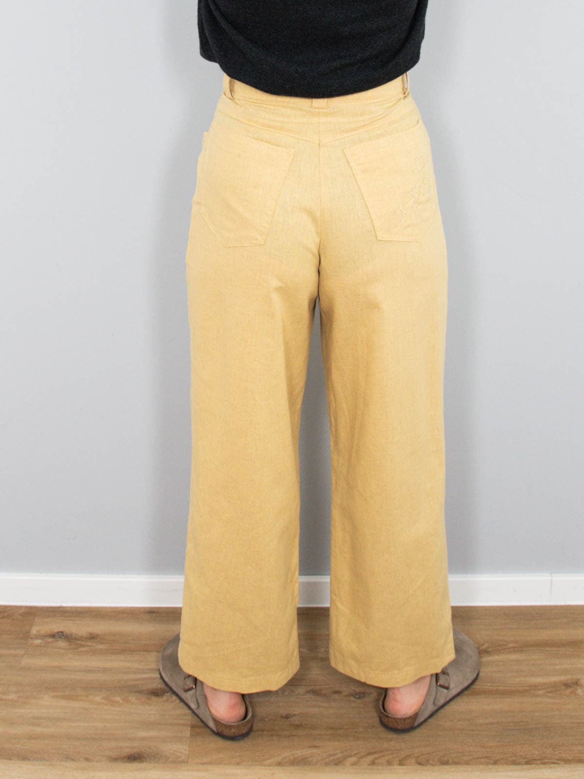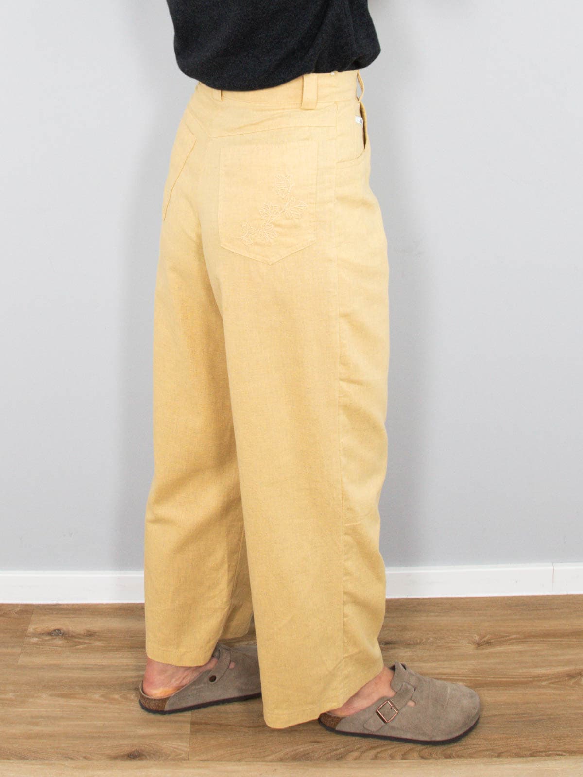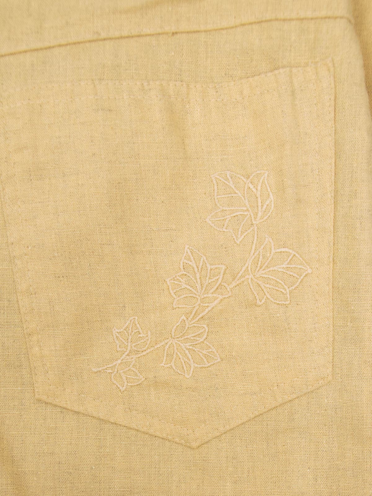 Beschreibung: Gerade geschnittene High Waist Hose mit dezenter Stickerei auf der rechten Potasche.
