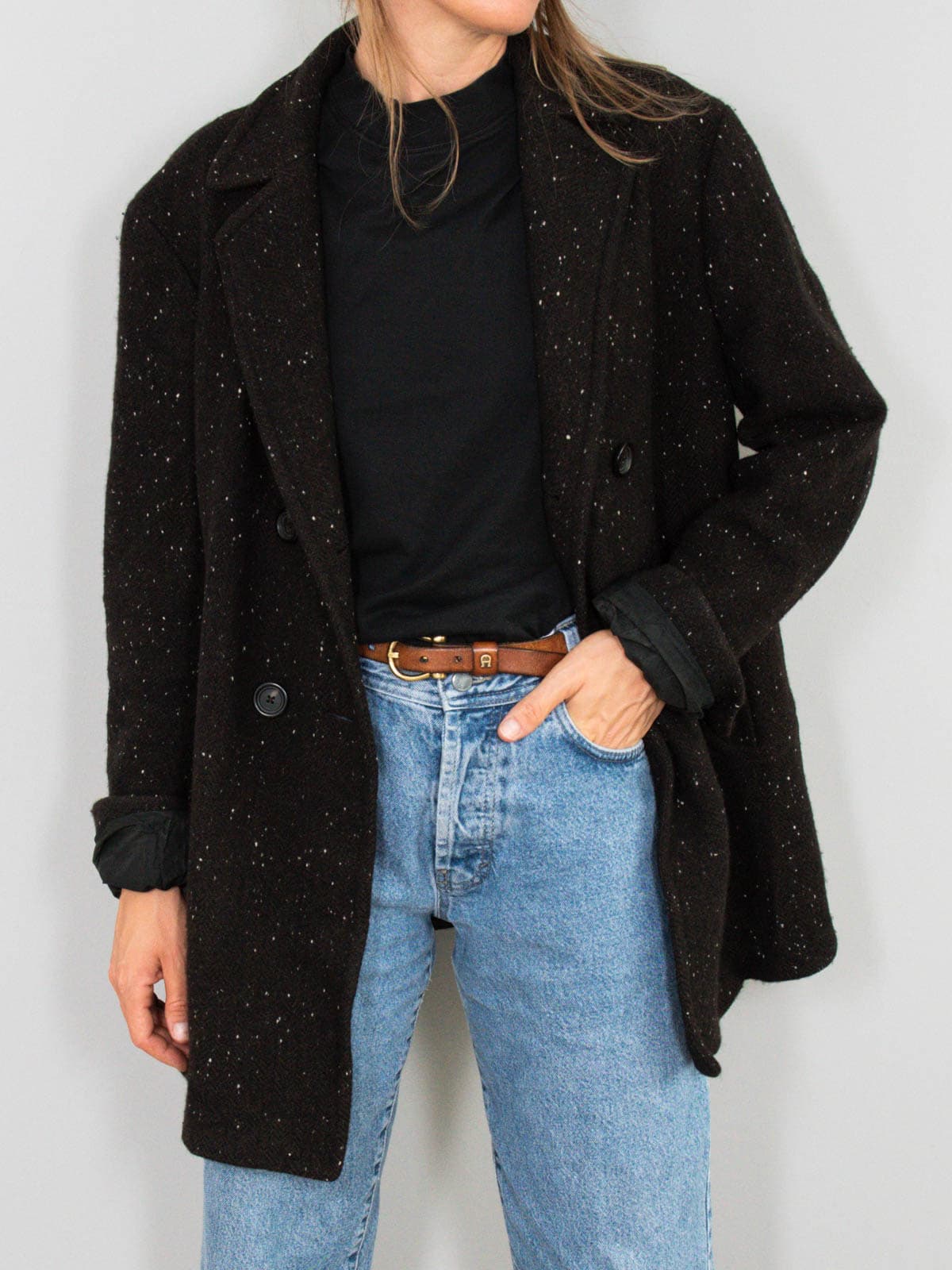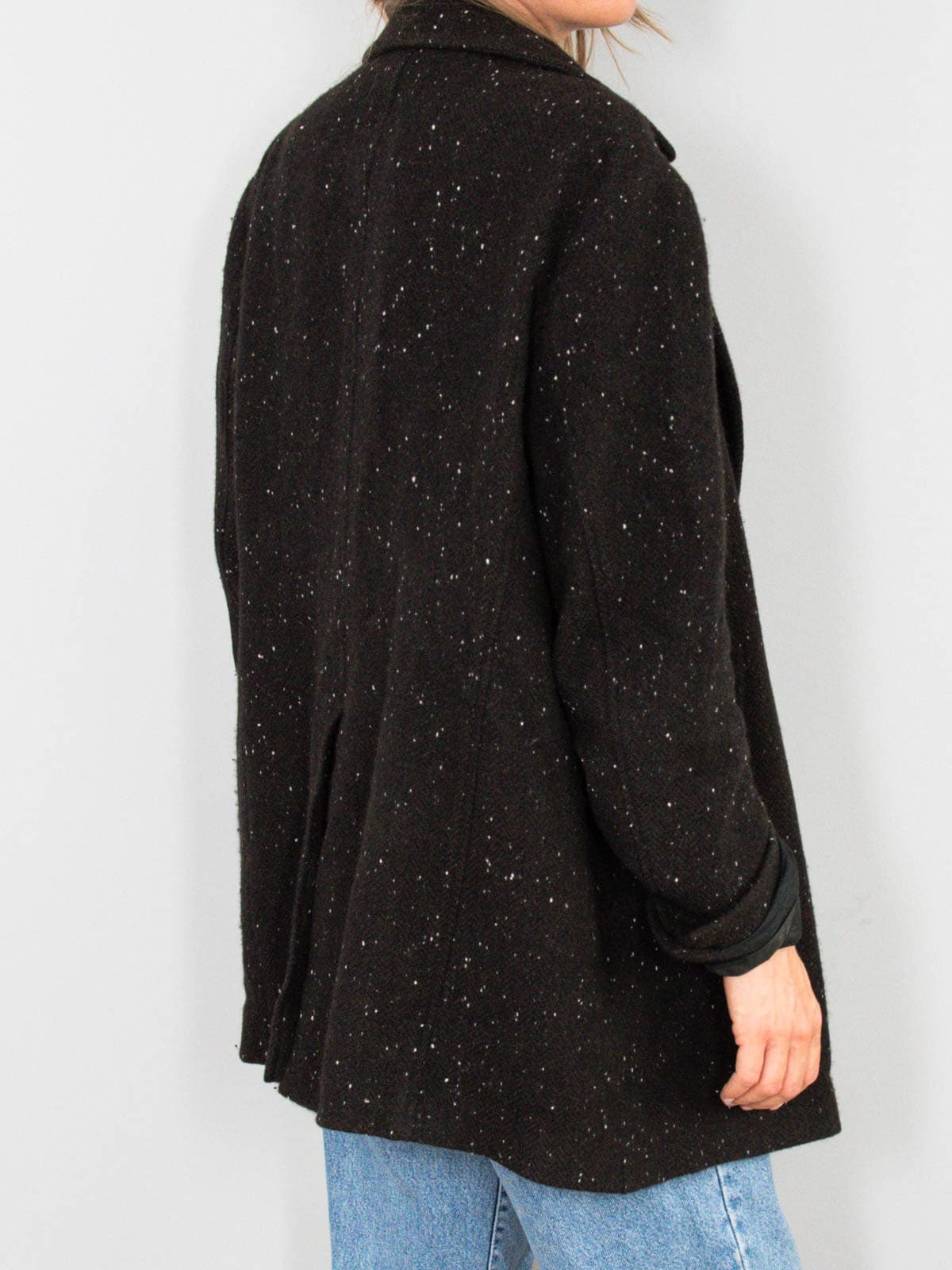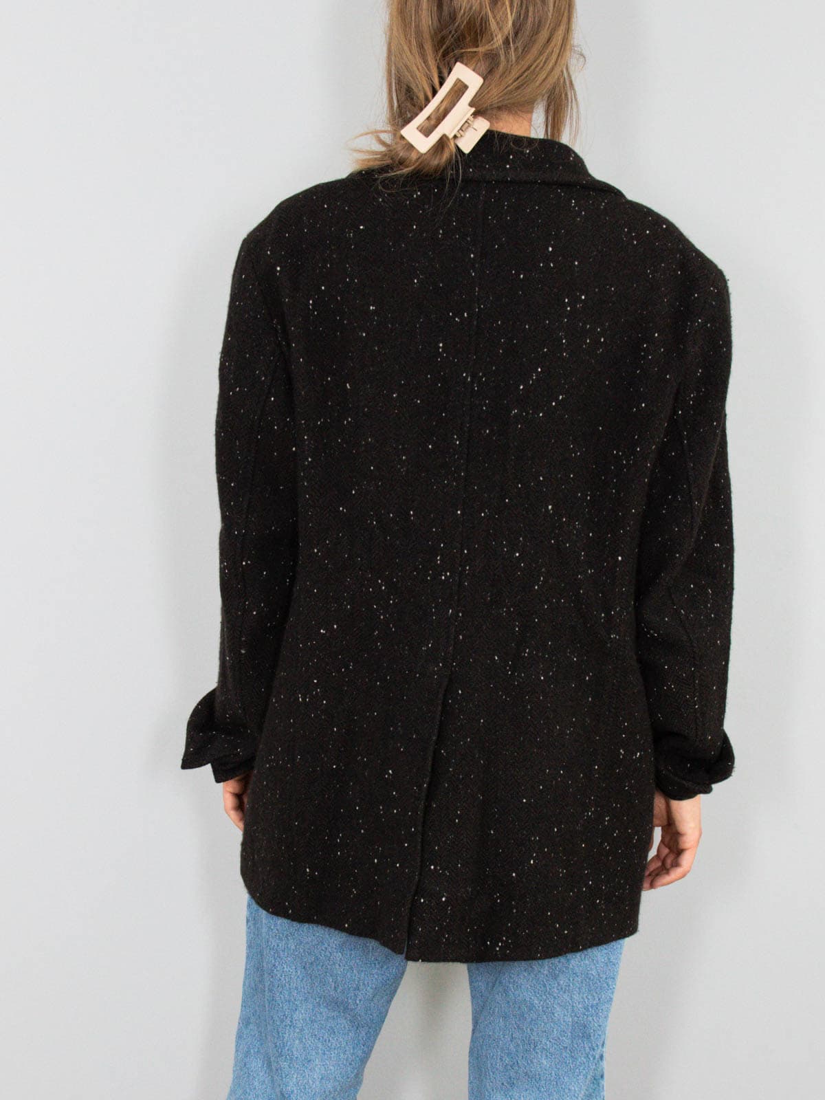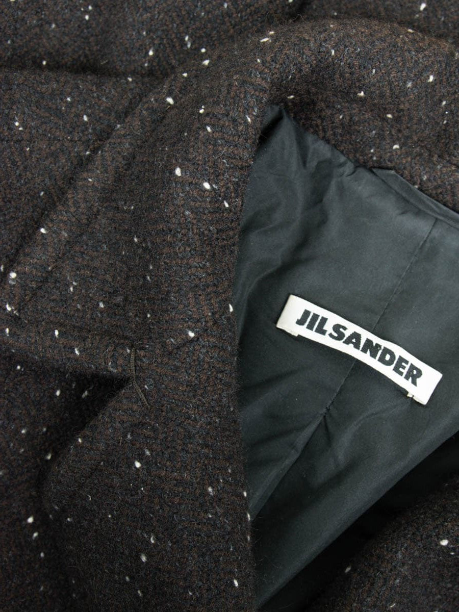 Beschreibung: Zeitlos, elegant und minimalistisch - das ist die Mode, mit der sich Jil Sander als bekannteste deutsche Designerin ihren Namen gemacht hat. Mit der Geburt des Minimalismus und ihrer puristischen Mode konnte Jil Sander mit ihren androgynen Schnitte in den 90er Jahren ihre größten Erfolge verzeichnen. Der braune Vintage Blazer mit hellen Sprenklern ist mit zwei Taschen versehen und lässt sich mit Knöpfen verschließen.