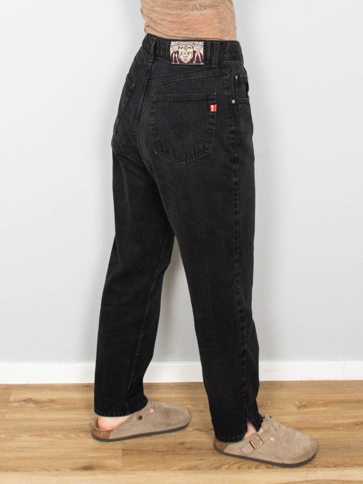 Beschreibung: Zeitlose schwarze High Waist Jeans vom Designerlabel Joop!. Am Knöchelbündchen minimal geschnitzt und an rechter Potasche mit dezenter Joop! Stickerei versehen.