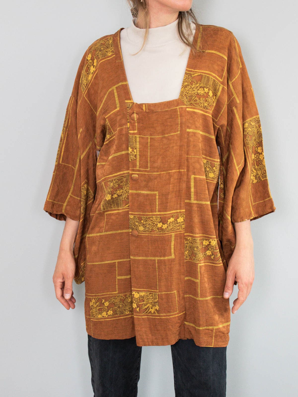 Beschreibung: Wunderschönster Vintage Kimono aus reiner Seide. Verschließbar mit Druckknöpfen.