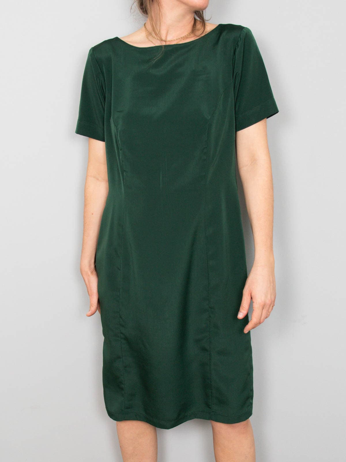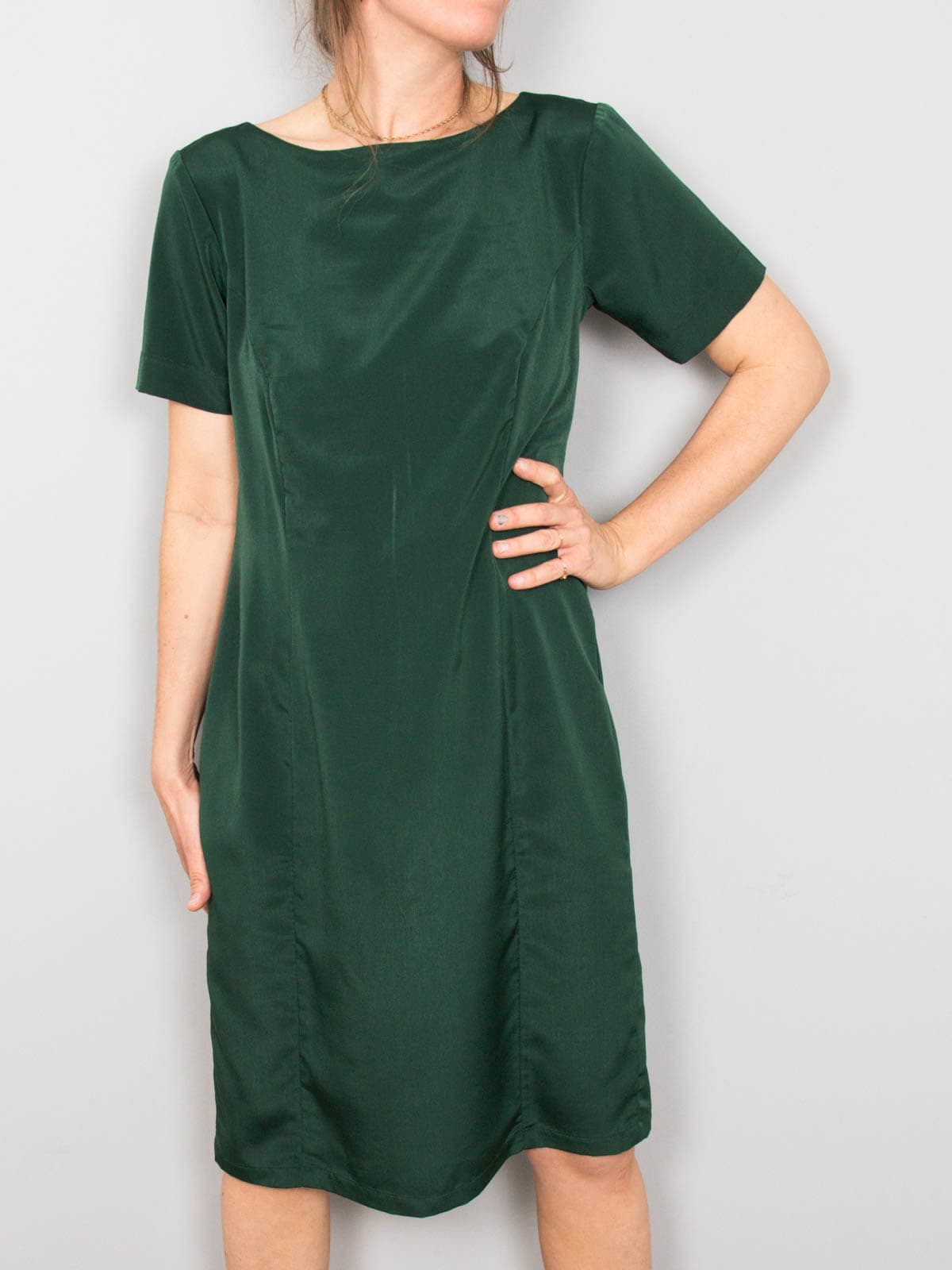 Beschreibung: Zeitloses Vintage Kleid in Waldgrün. Verschließbar mit einem Reißverschluss am Rücken. Das Kleid ist nicht unterfüttert.
