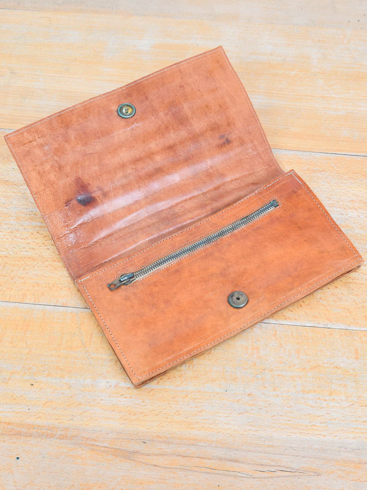 Beschreibung: Eine weitere fabelhafte Clutch aus braunem Leder. Verschließen lässt sich die Vintage Tasche mit einem Druckknopf und von innen erwartet dich ein großes Fach sowie ein weiteres kleines Fach mit Reißverschluss.