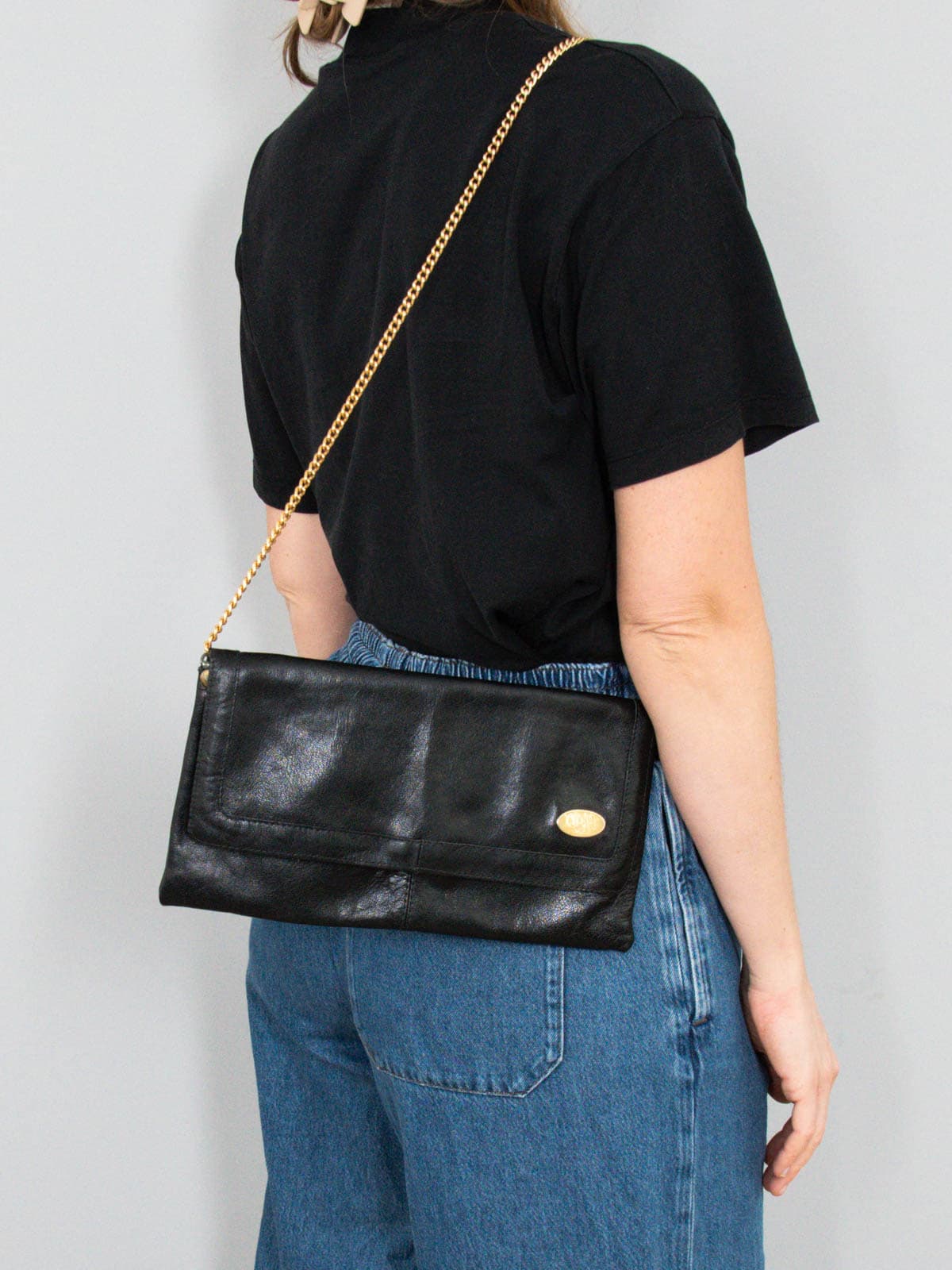 Beschreibung: Zeitlose und elegante Vintage Clutch aus weichem Leder. Verschließbar mit einem Druckknopf und von innen erwartet dich ein großes Fach mit geblümten Innenstoff. Die Clutch lässt sich dank goldfarbener Kette auch über der Schulter tragen.