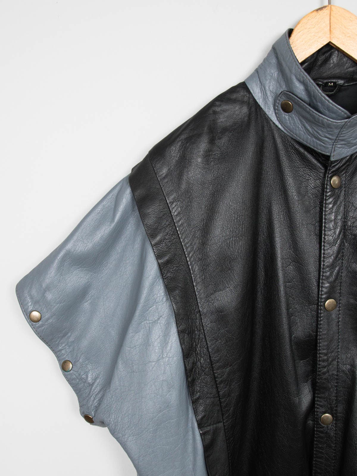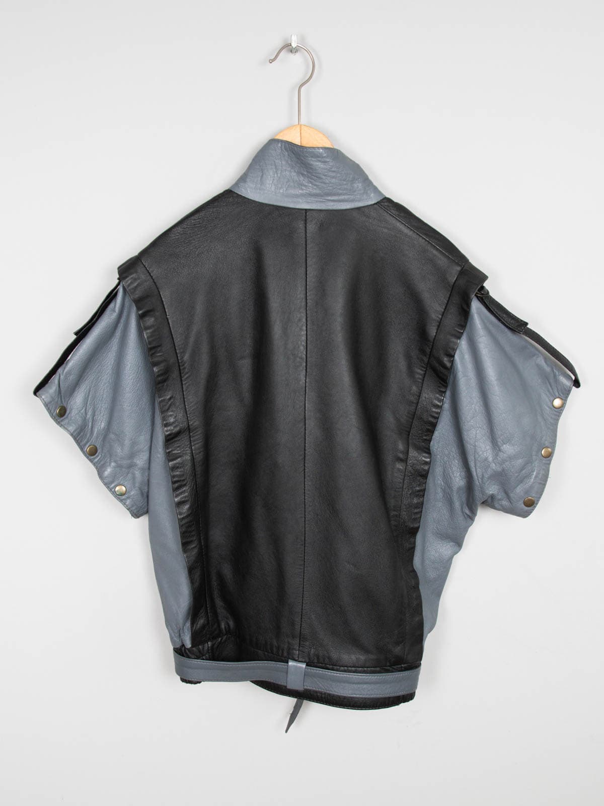 Beschreibung: Sehr coole und weiche Vintage Lederjacke. Dank Knöpfen an den Seiten lassen sich die Ärmel auch wunderbar abknöpfen und du hast in Windeseile eine Weste gezaubert - ein echter 2-in-1 Traum aus Leder. Unterfüttert und ausgestattet mit zwei Seitentaschen.