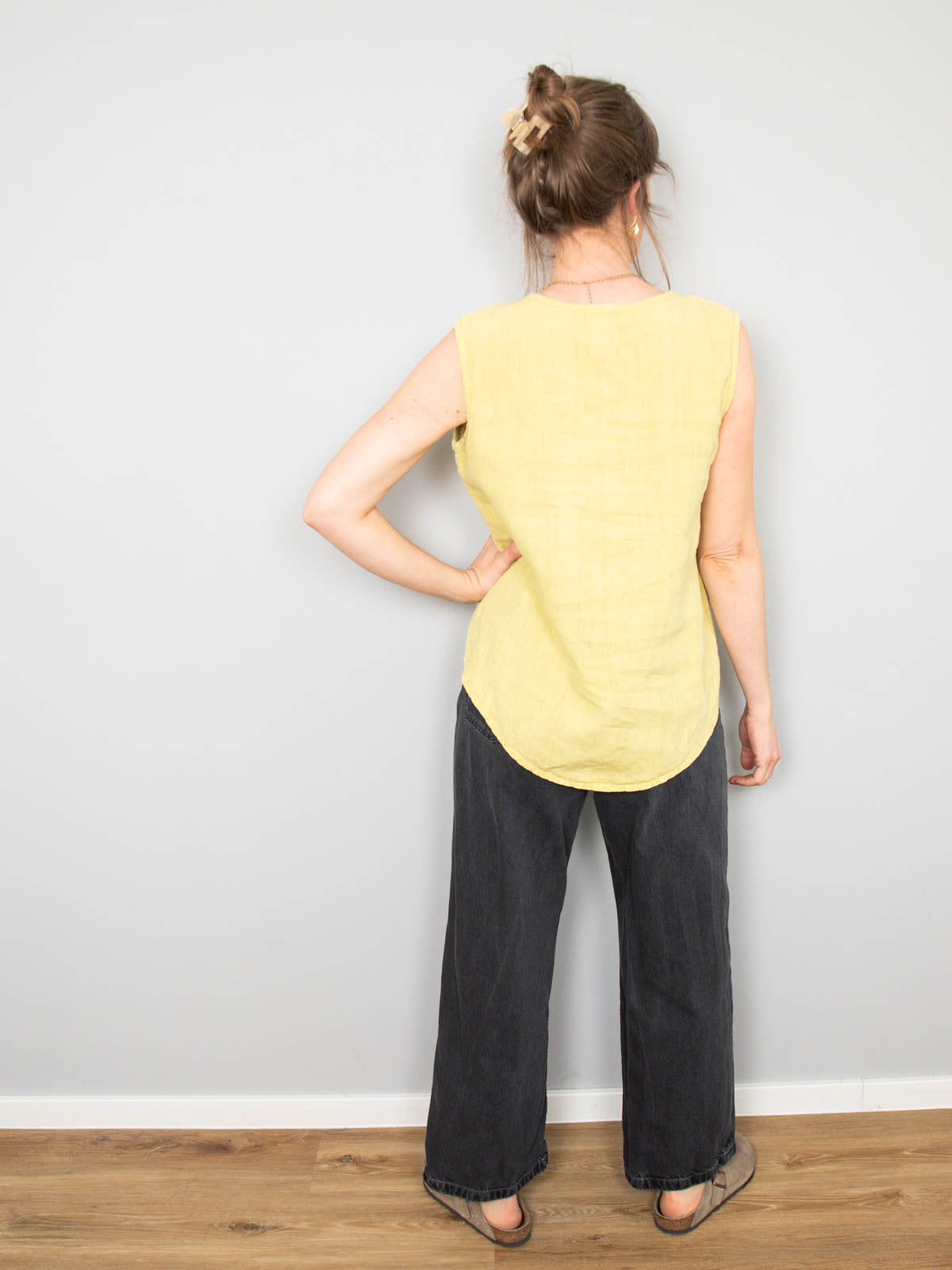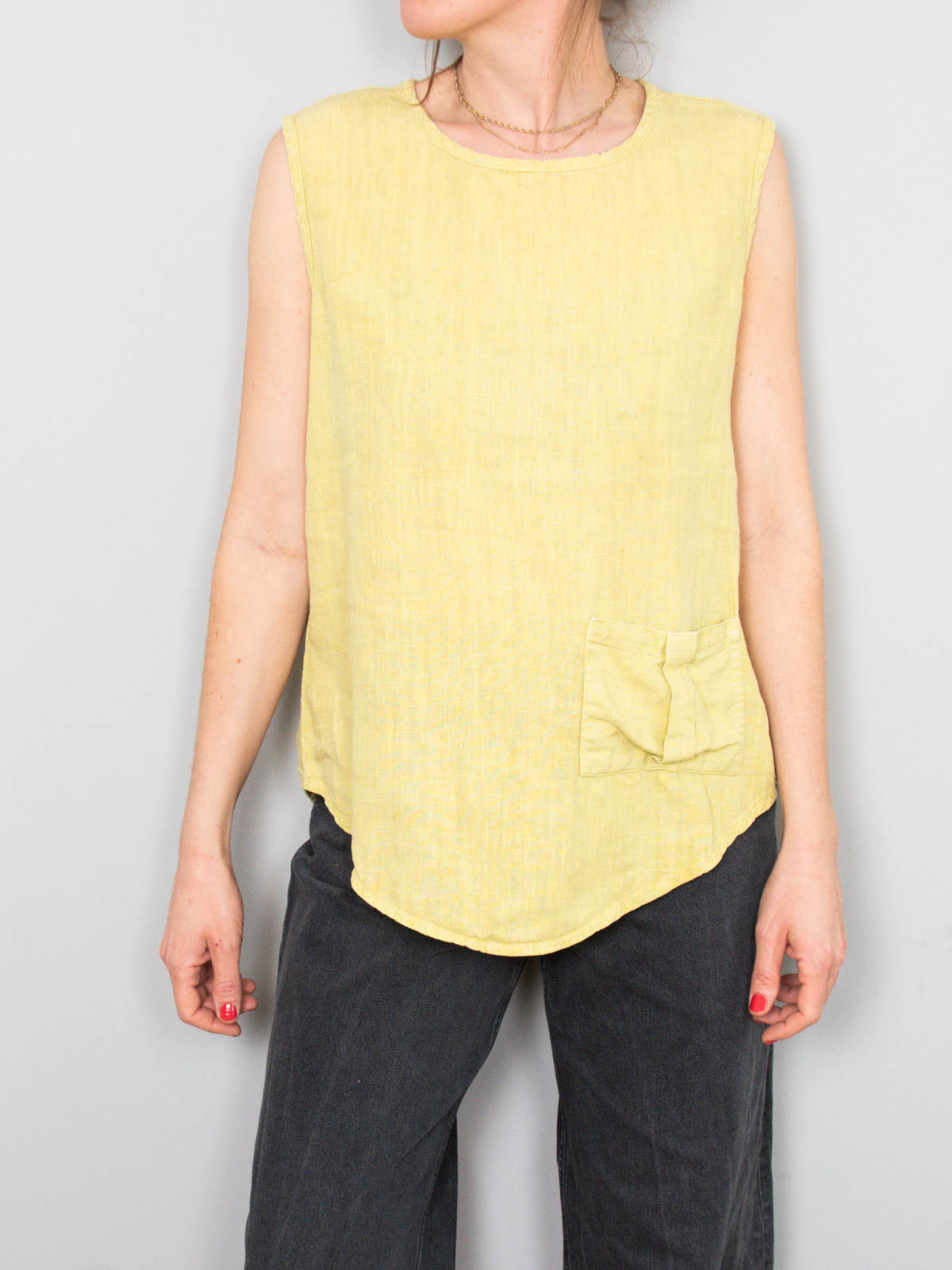 Beschreibung: Sehr cooles und robustes Trägerhemd aus Leinen mit leichtem Oversize Schnitt und Vordertasche.