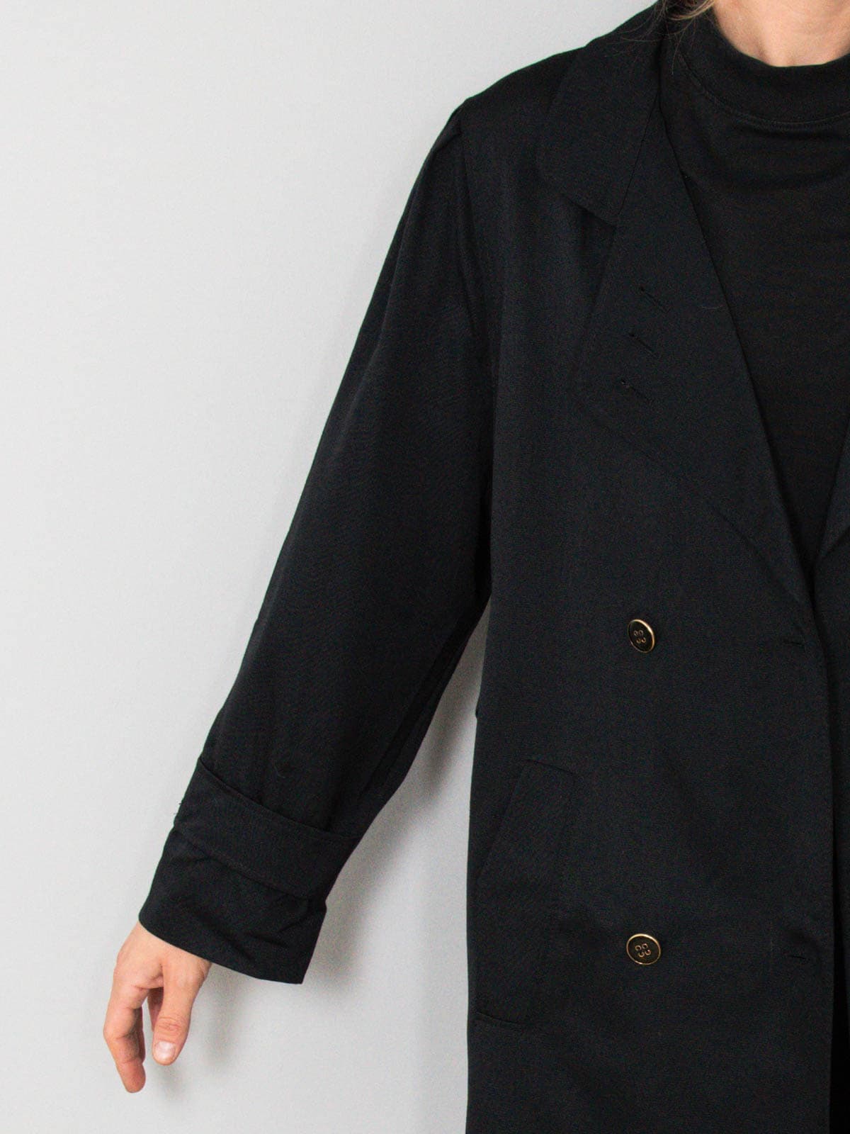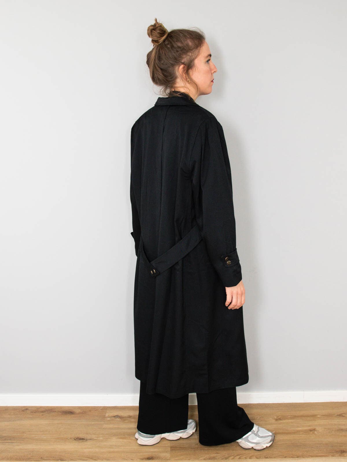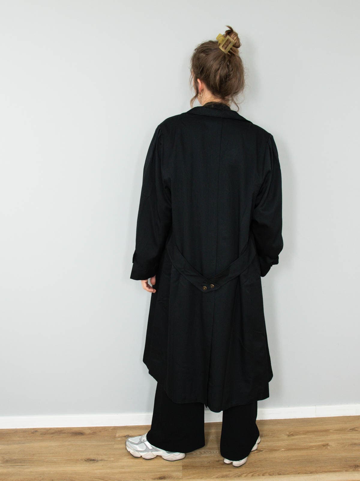 Beschreibung: Zeitloser Vintage Mantel in Schwarz. Perfekt für den Übergang - leicht und mit Wollanteil.