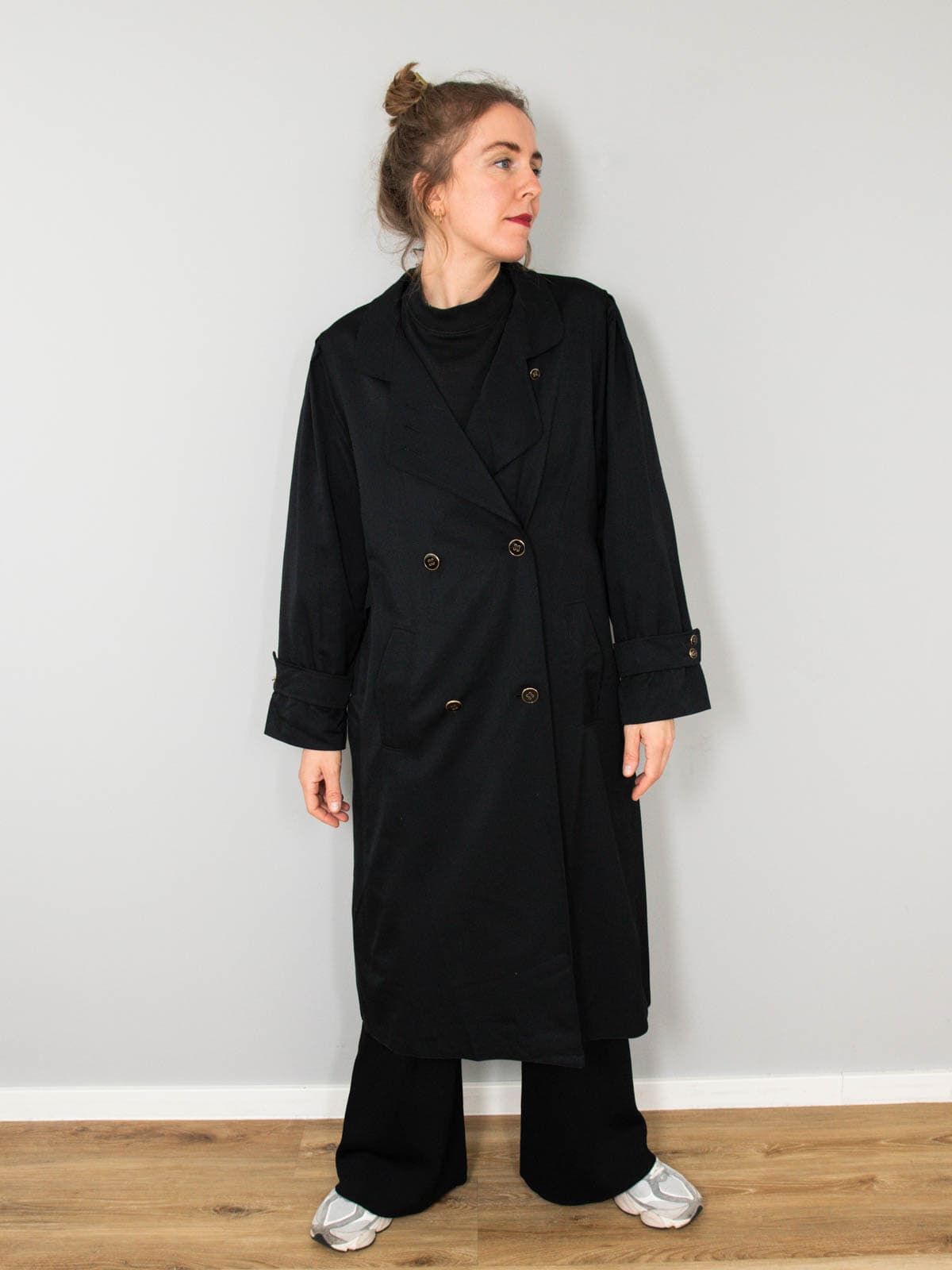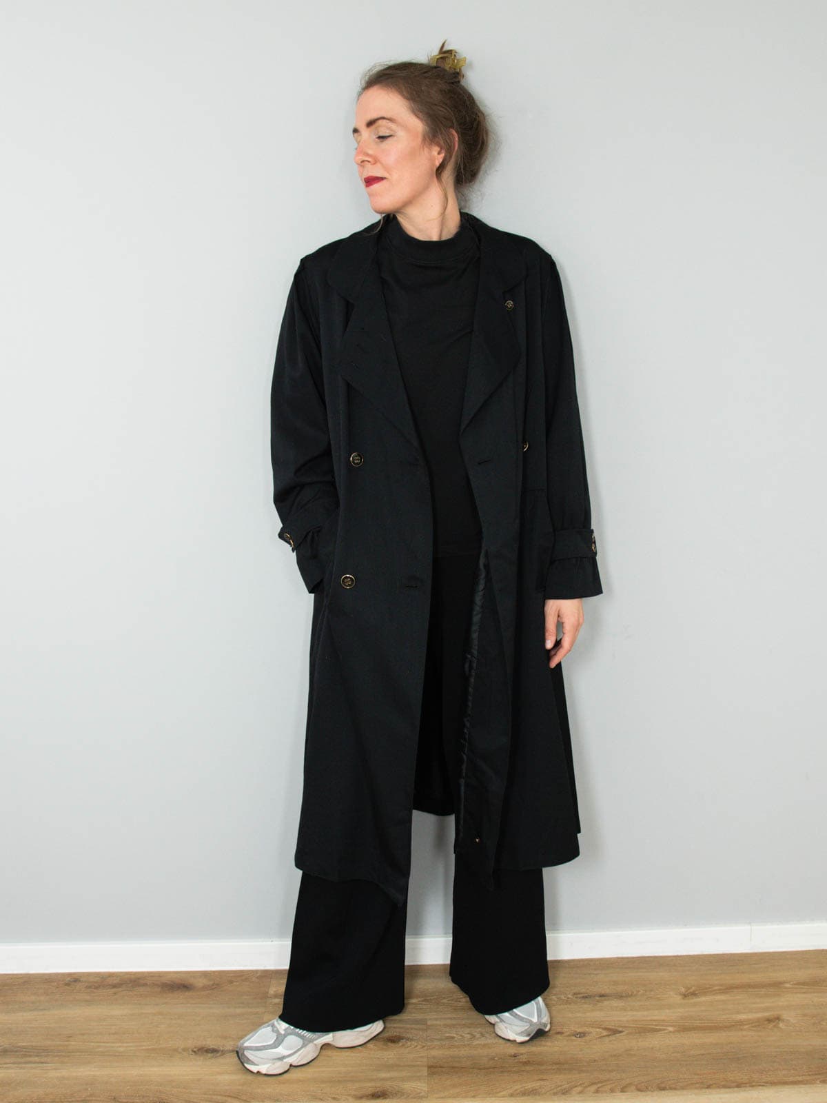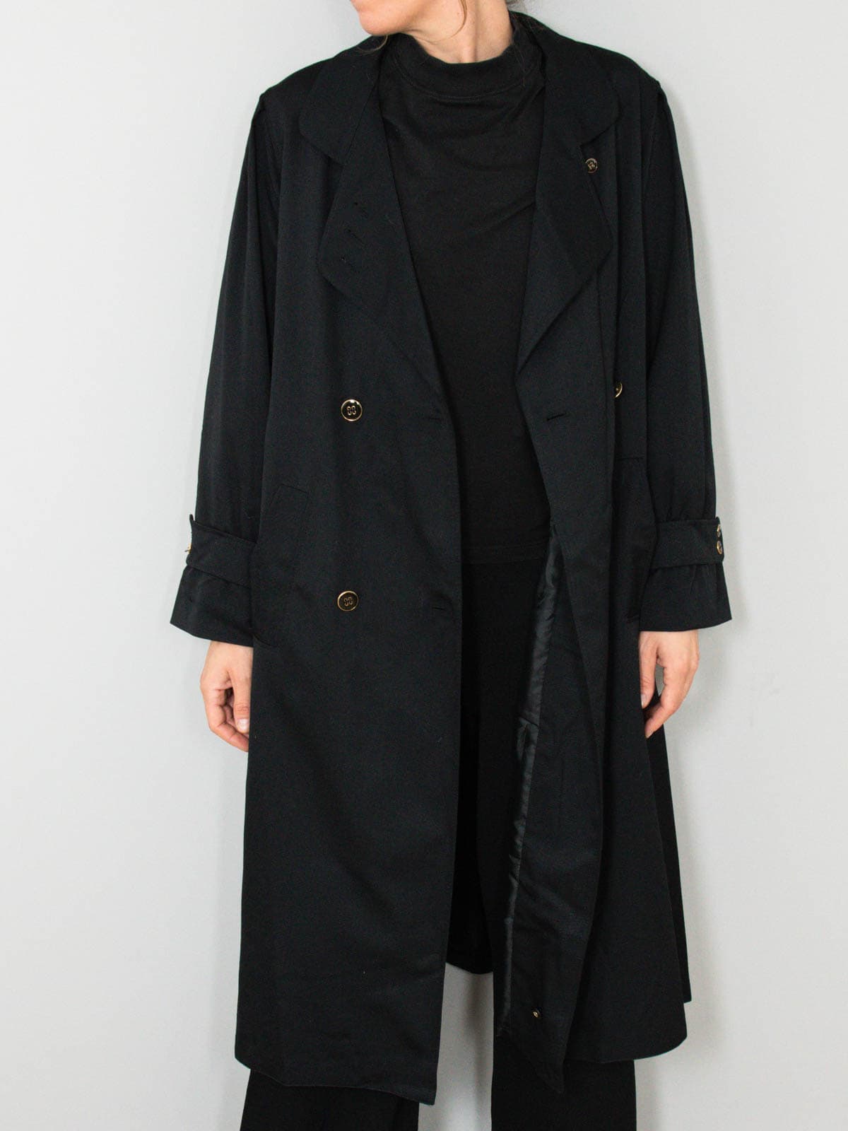 Beschreibung: Zeitloser Vintage Mantel in Schwarz. Perfekt für den Übergang - leicht und mit Wollanteil.