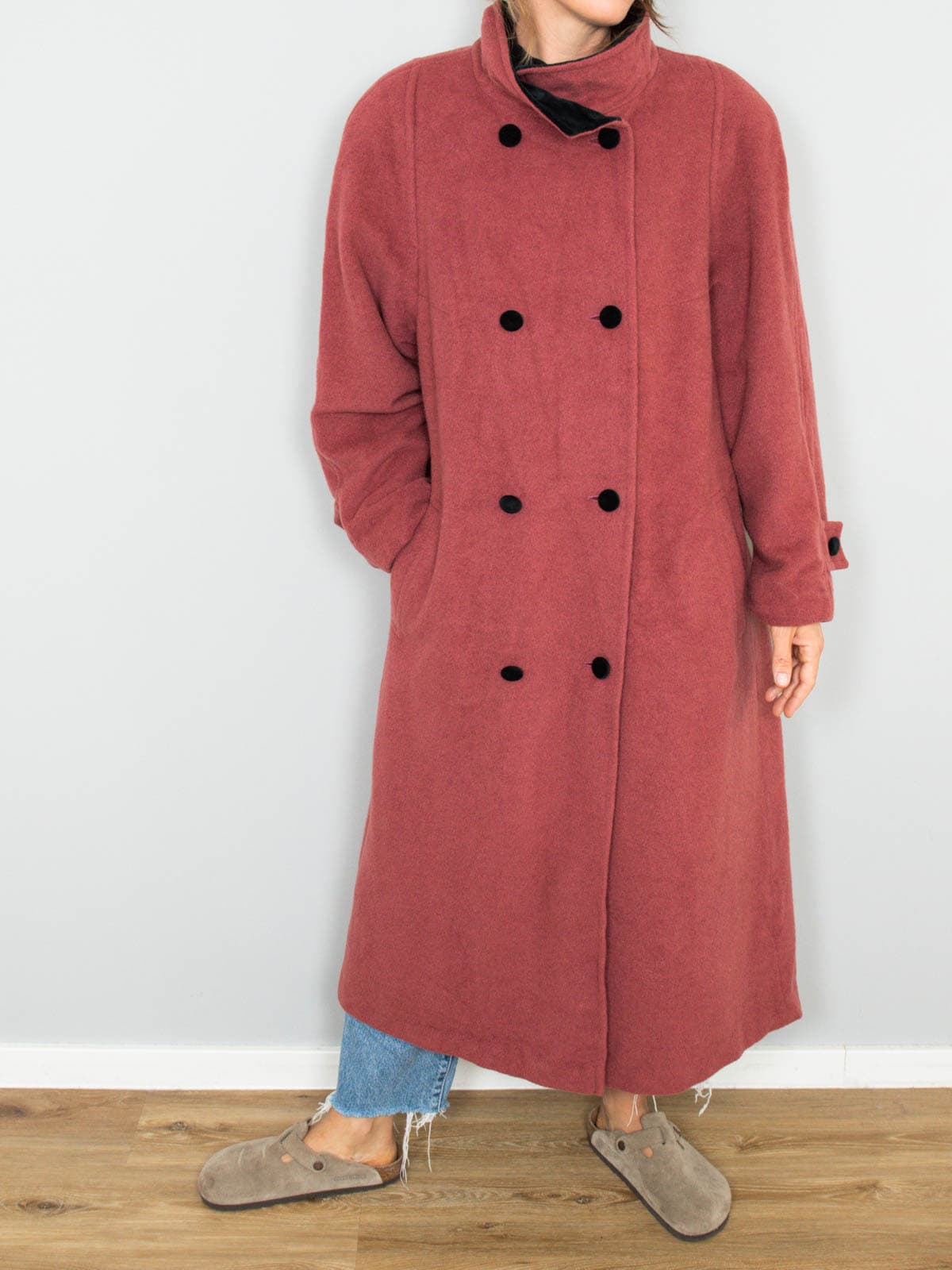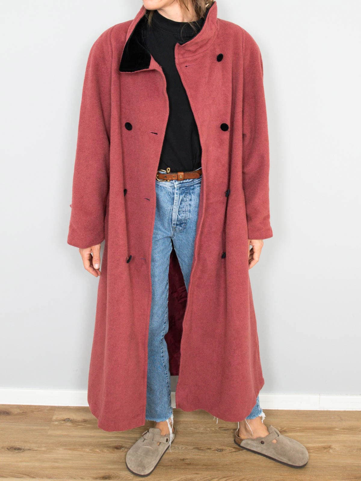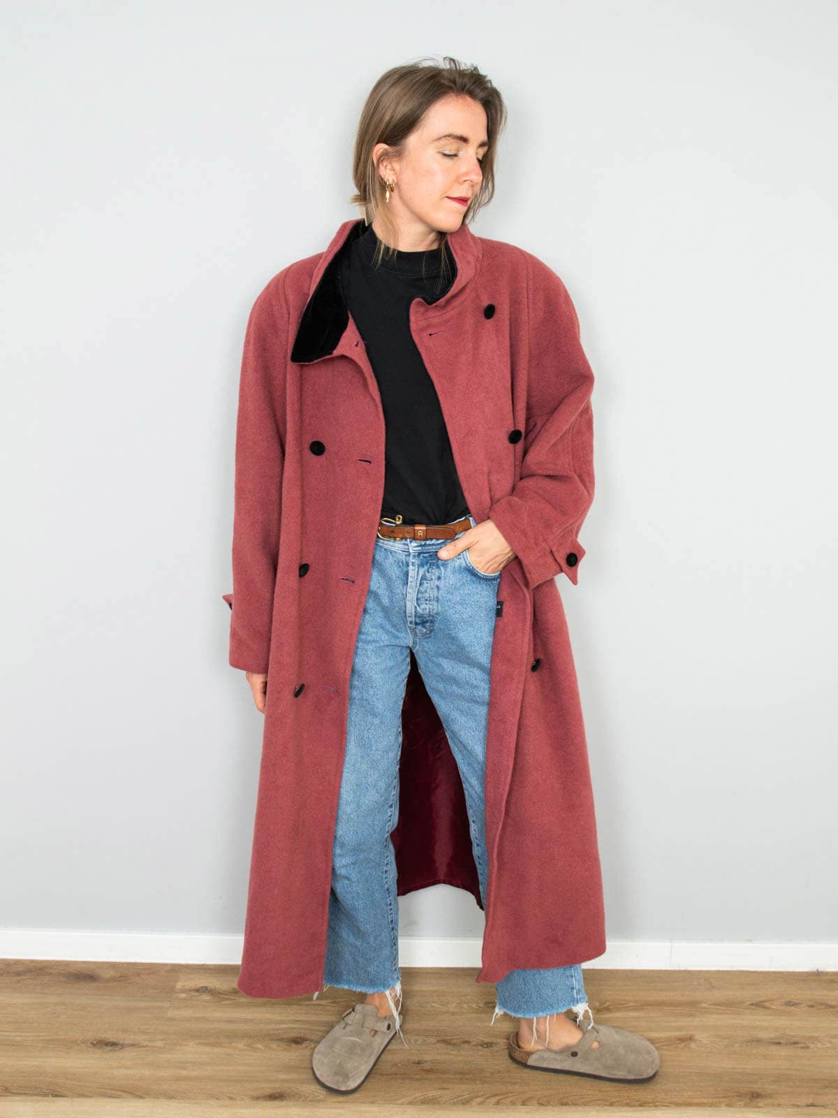 Beschreibung: Toller Vintage Mantel in ausgefallenem Altrosa. Unterfüttert und ausgestattet mit zwei Taschen.