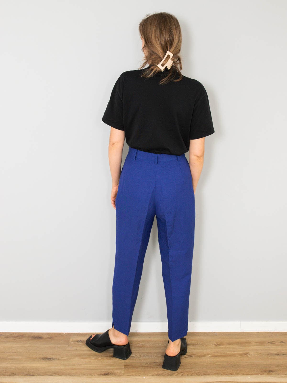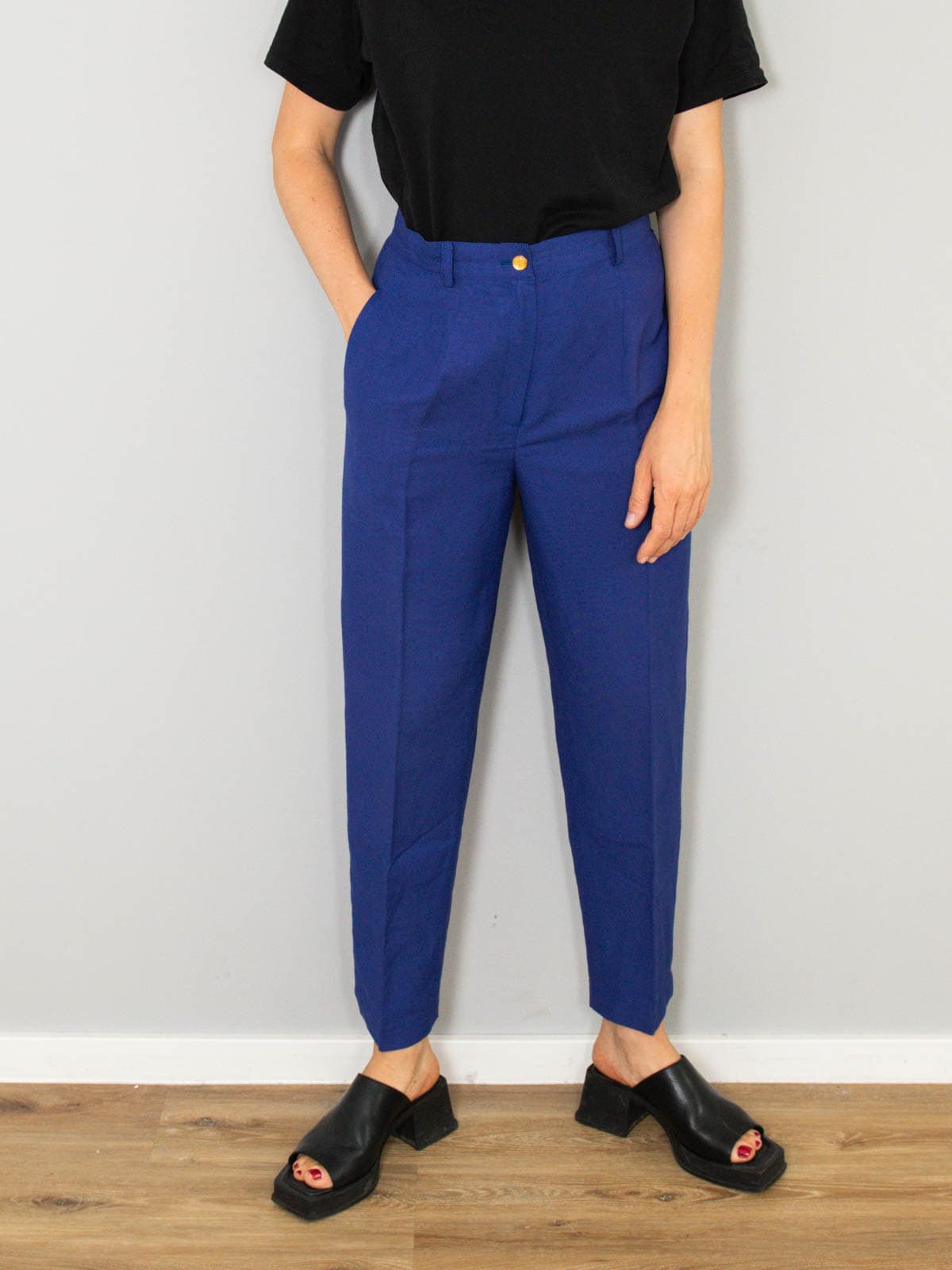 Beschreibung: Eine tolle, hoch geschnittene Vintage Hose vom deutschen Designerlabel MCM. Auf den Fotos sieht sie farblich aus wie blau, in live ist es aber tatsächlich eher ein dunkles, sattes Lila.