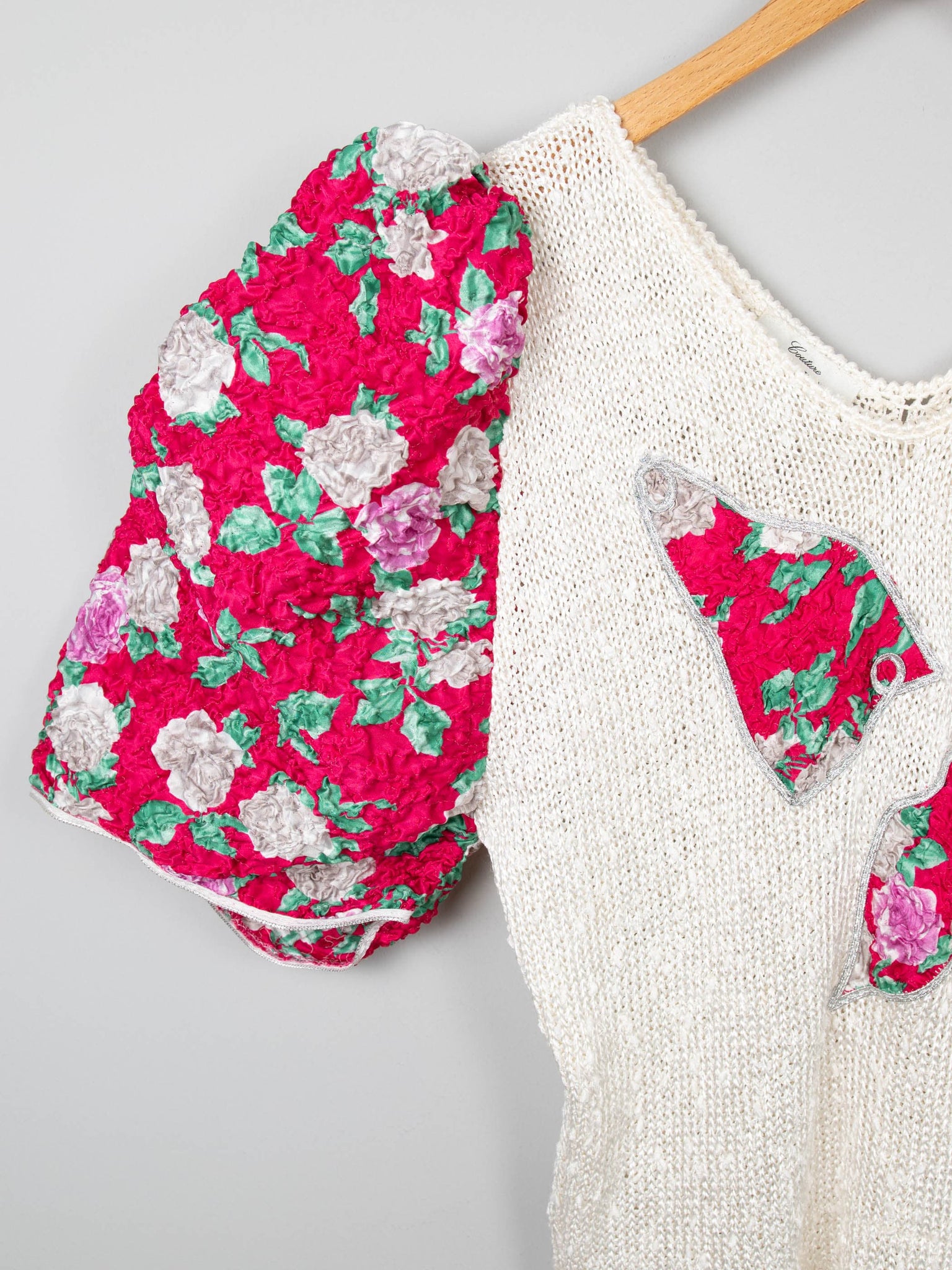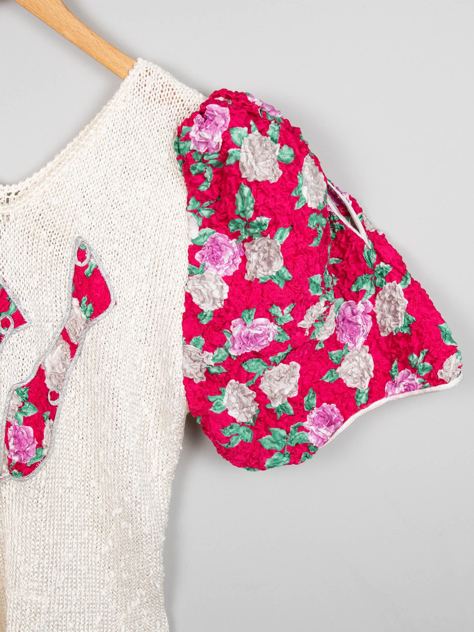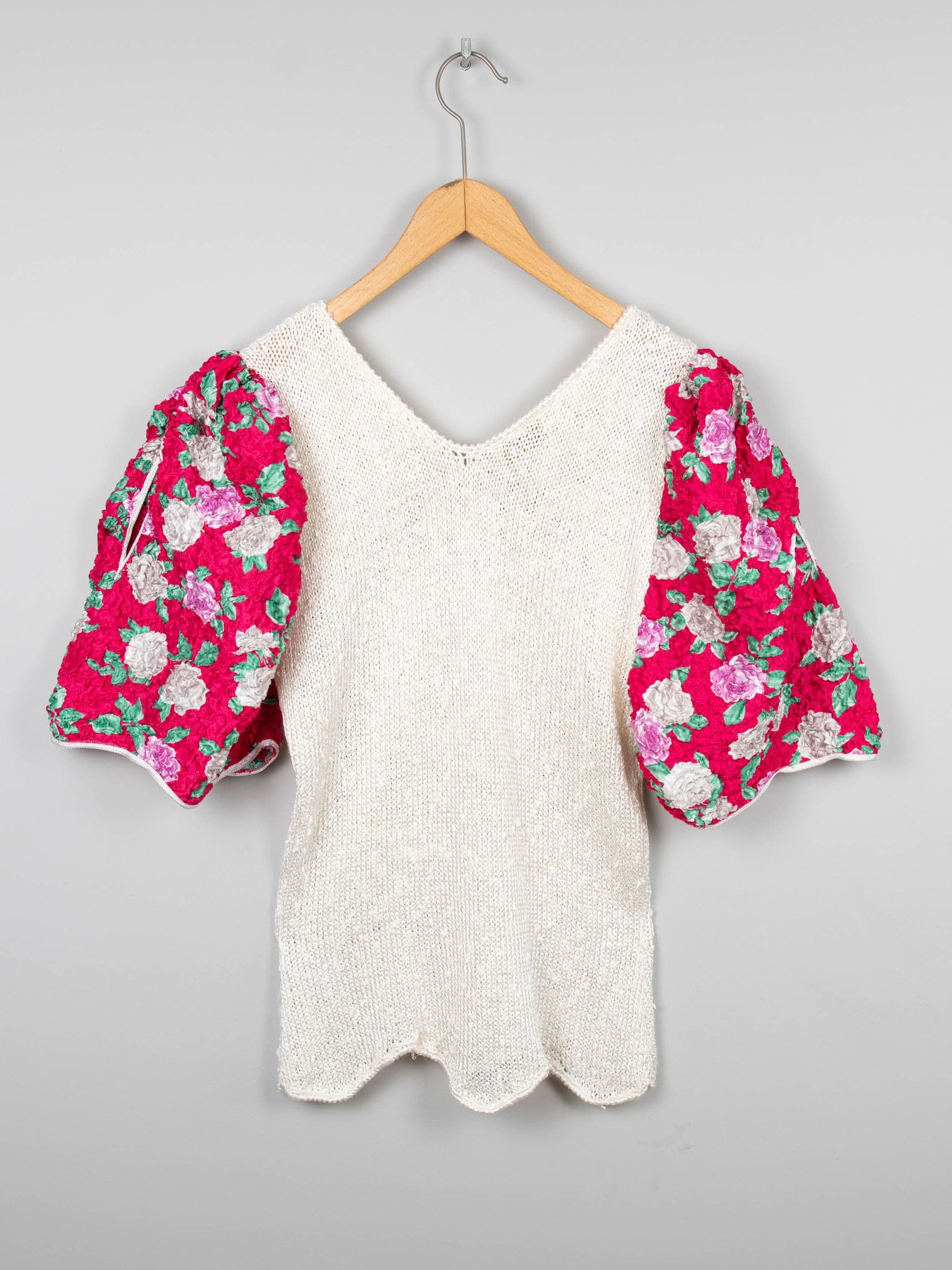 Beschreibung: Einmaliges, gestricktes Vintage Oberteil mit verrückten Puffärmeln in Pink.