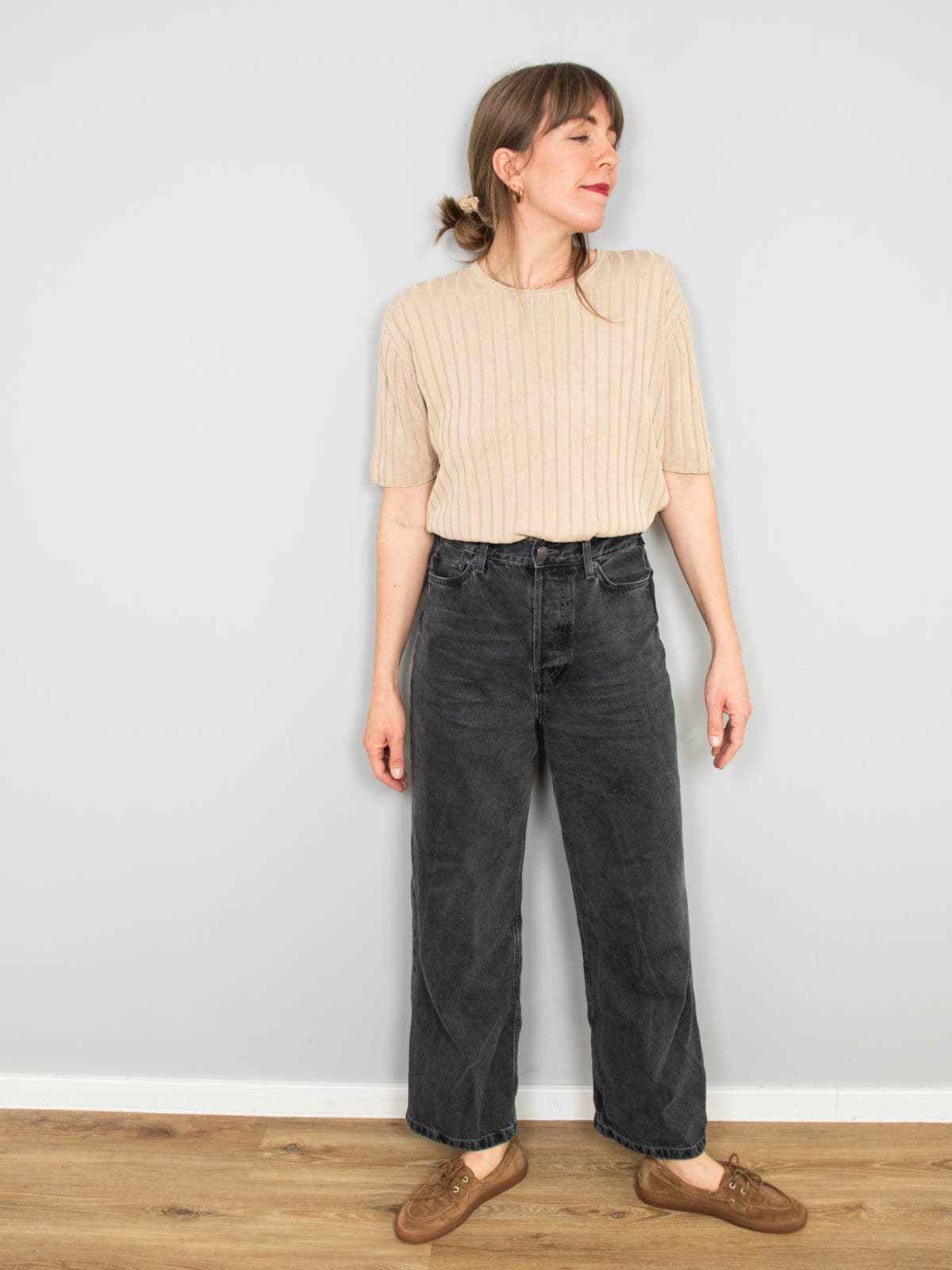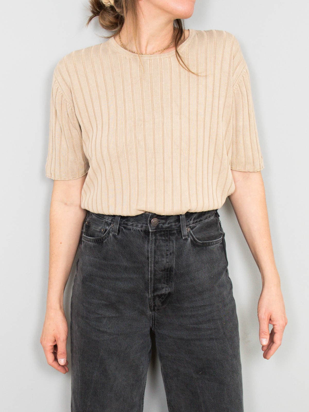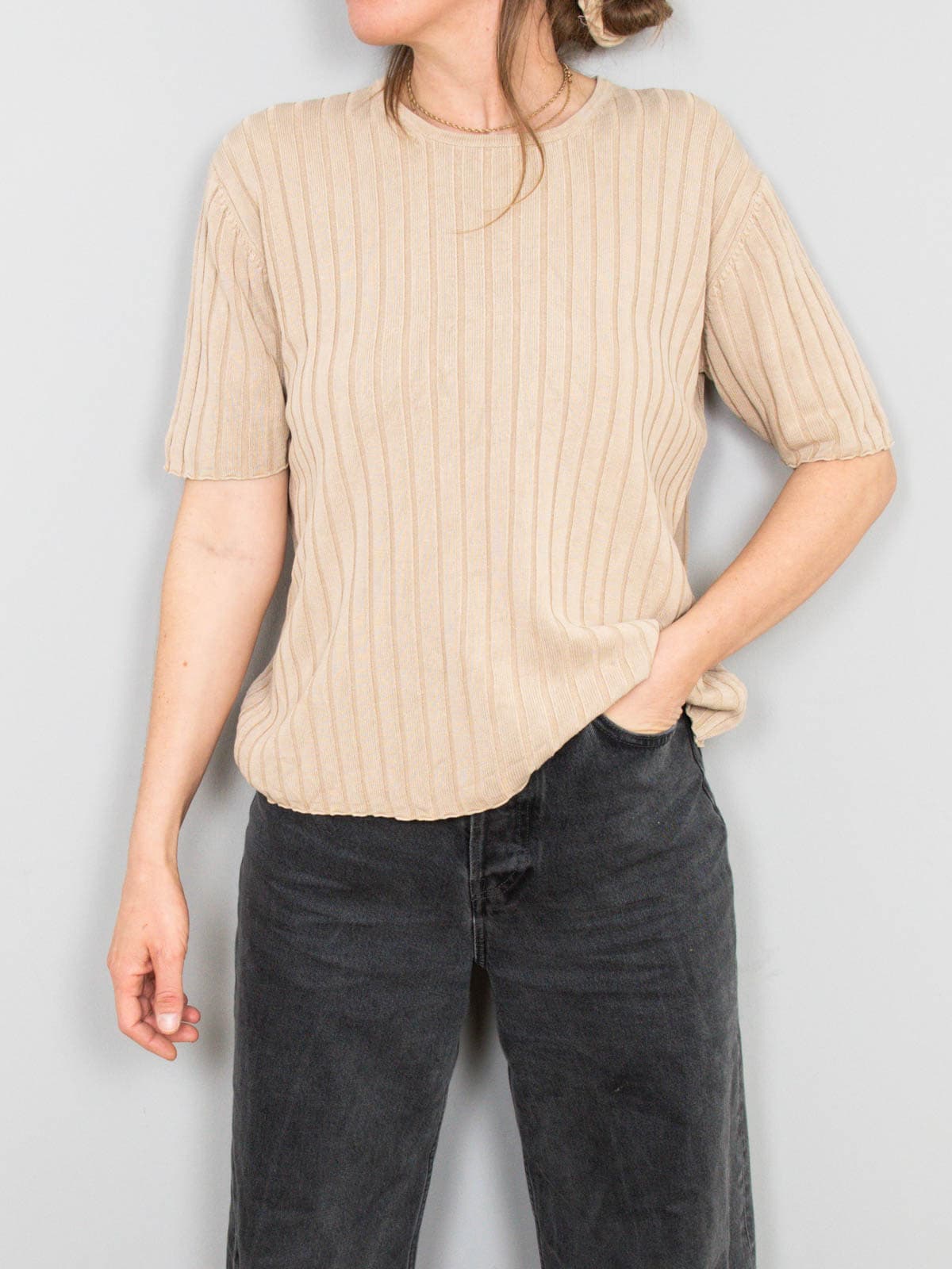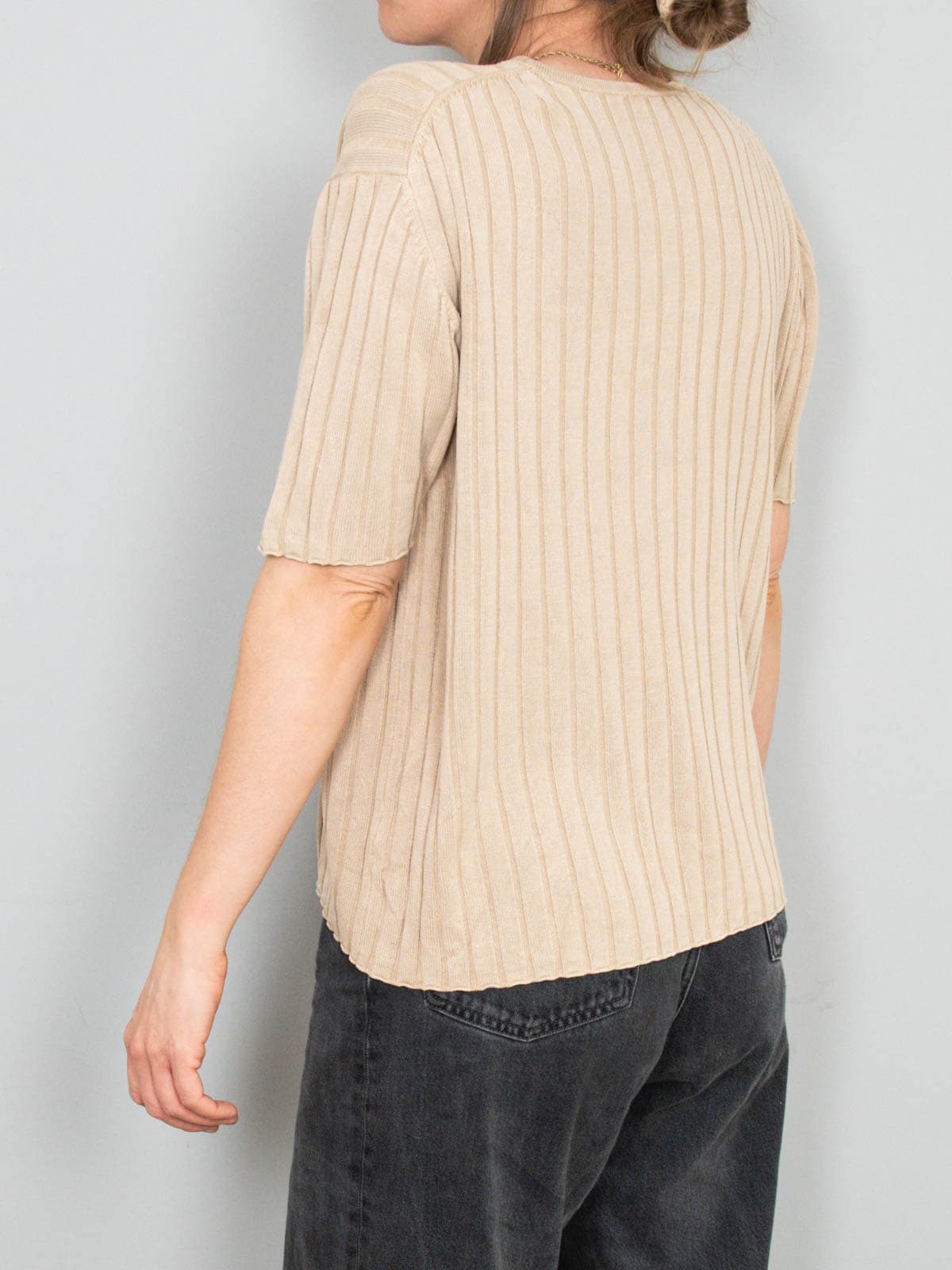 Beschreibung: Zeitloses Rippstrick Vintage Oberteil aus reiner Seide.