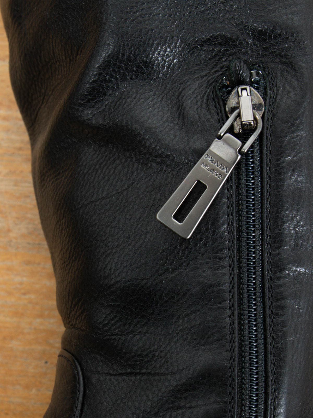 Beschreibung: Das weltweit bekannte Luxuslabel Prada wurde 1913 in Mailand gegründet und überzeugte im Laufe der Jahrzehnte mit seinen schlichten, modernen Schnitten sowie bunten Farben. Der elegante und zeitlose Stiefel ist seiltich mit einem Reißverschluss ausgestattet.