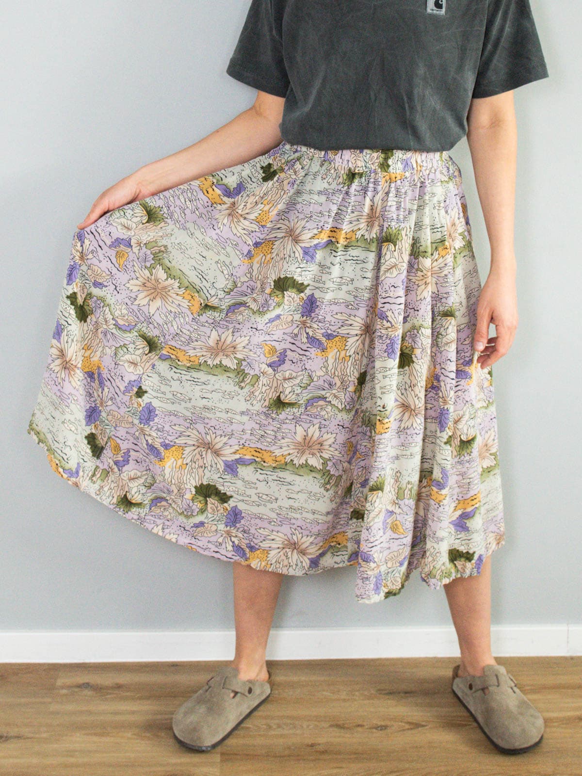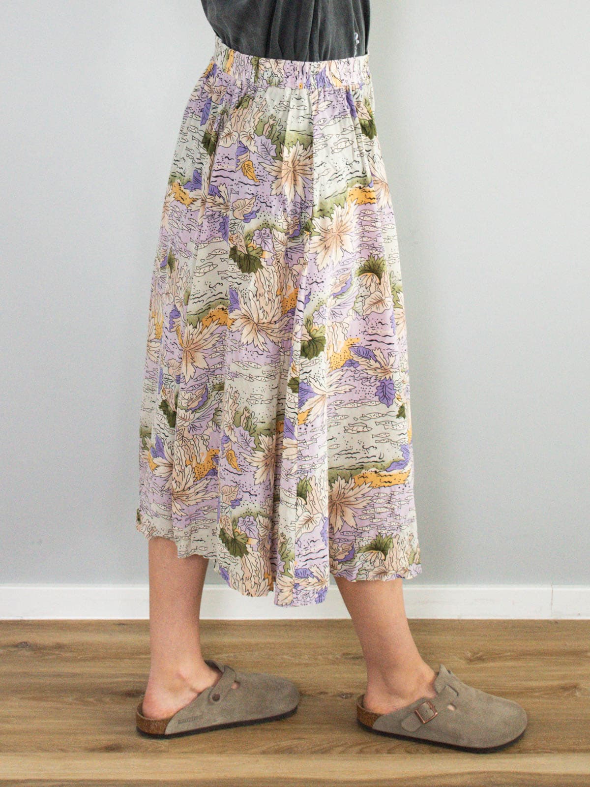 Beschreibung: Wunderschönster, luftig leichter Vintage Rock aus reiner Seide. Der Rock ist mit einem dehnbaren Bund ausgestattet, zwei Seitentaschen und ist nicht unterfüttert. Dank des elastischen Bunds lässt er sich auch ebenso wunderbar von größeren Größen ausführen.