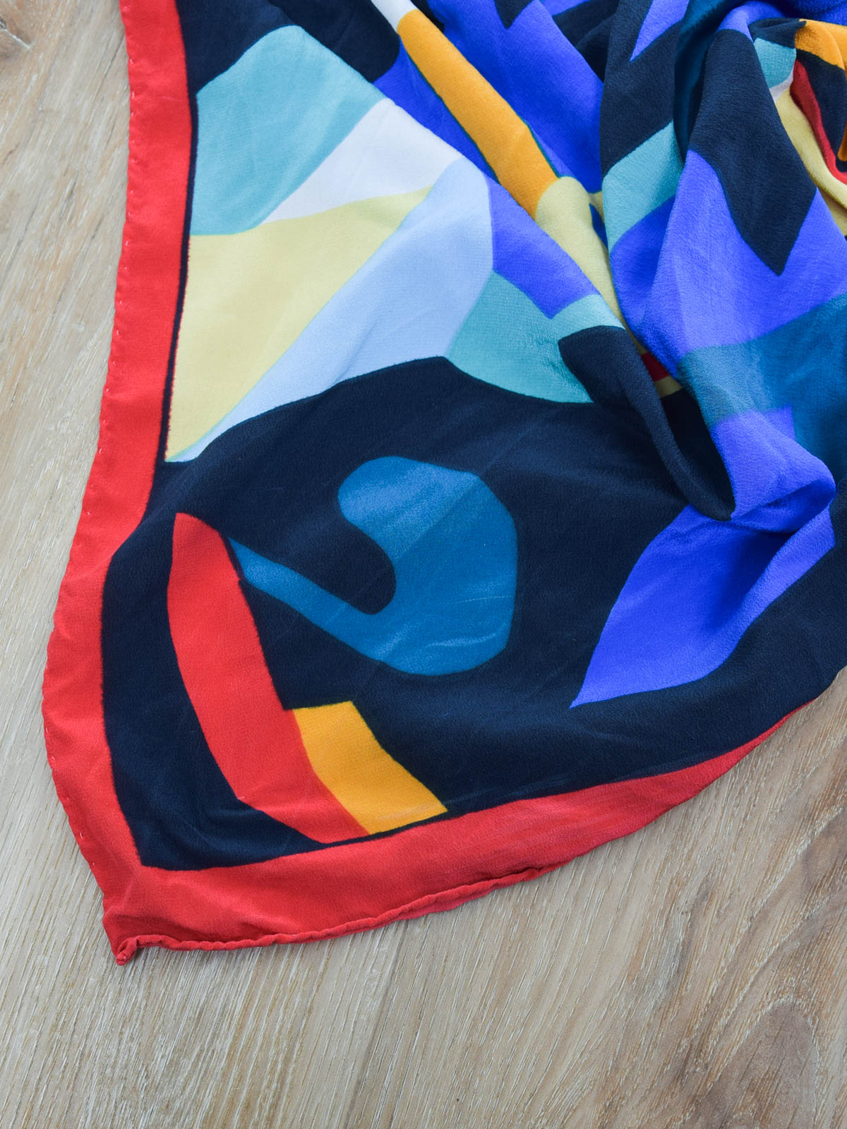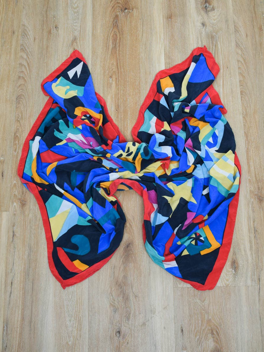 Beschreibung: Großes und buntes Vintage Seidentuch.