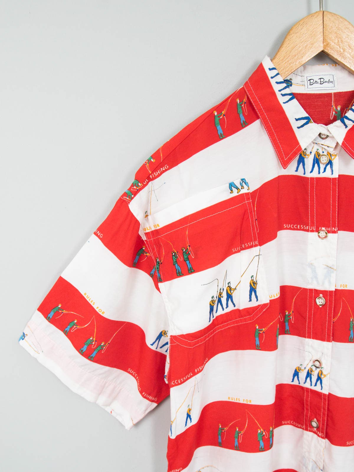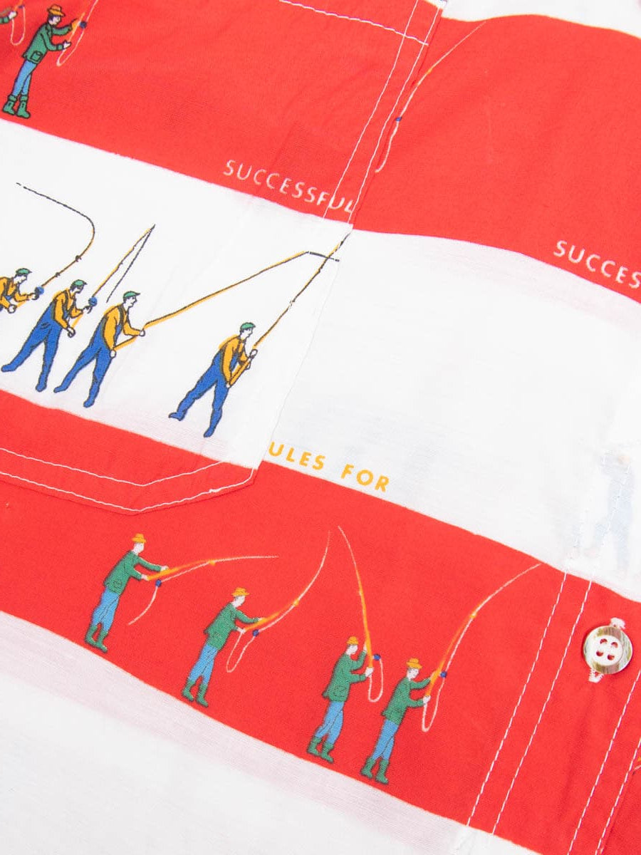 Beschreibung: Coole gestreifte Vintage Bluse mit Angler Motiv.