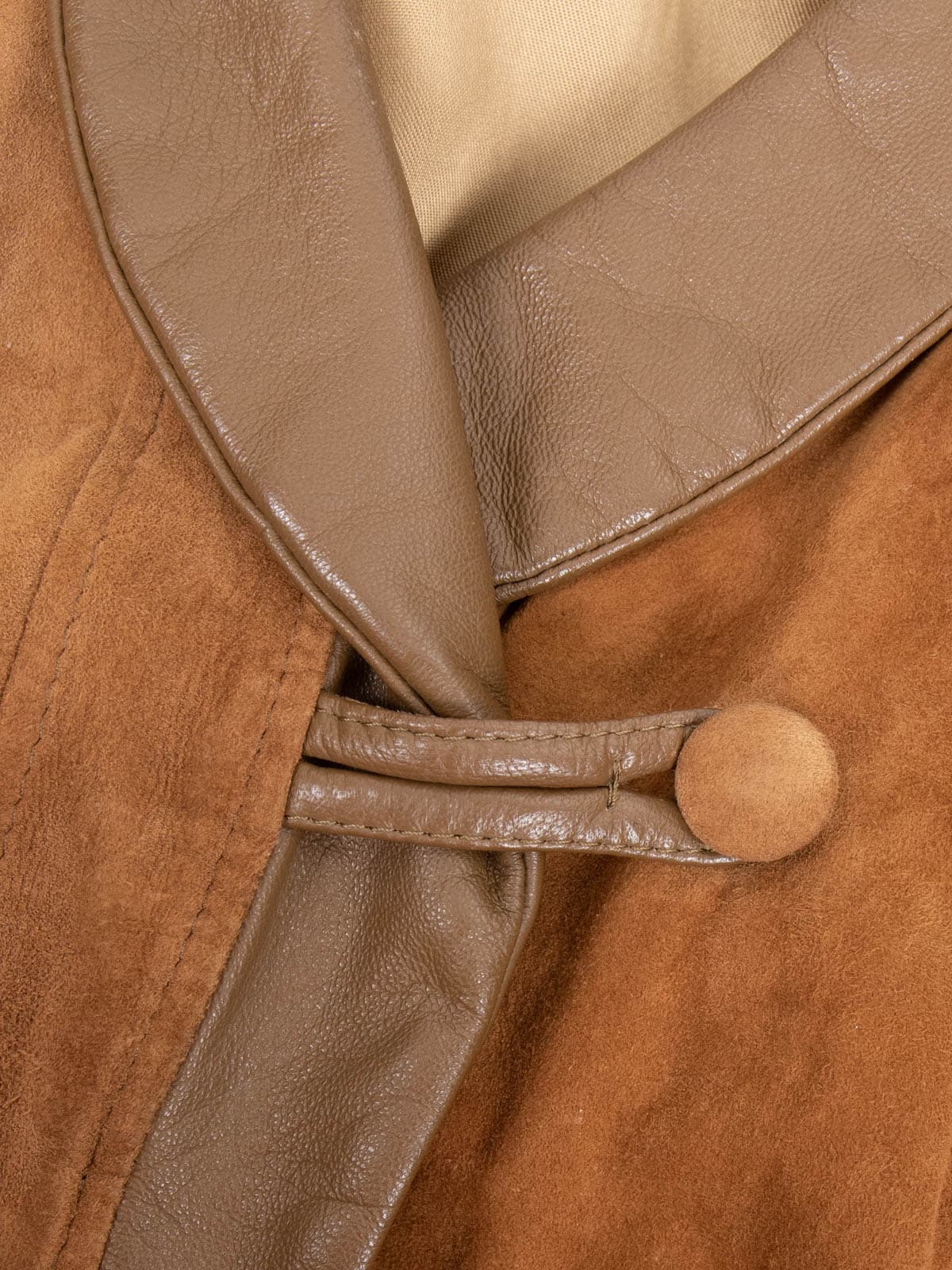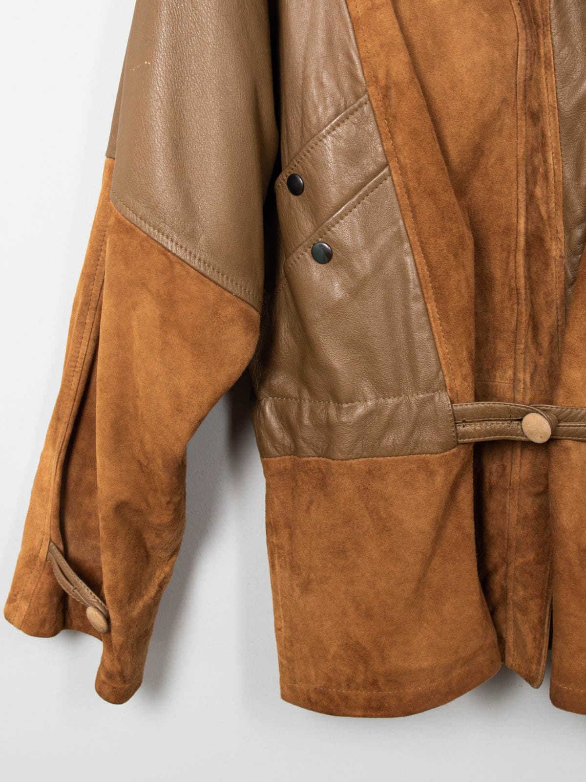Beschreibung: Wunderschönste Vintage Lederjacke mit Wildlederelementen. Verschließbar mit Lederknöpfen und ausgestattet mit insgesamt vier Taschen.