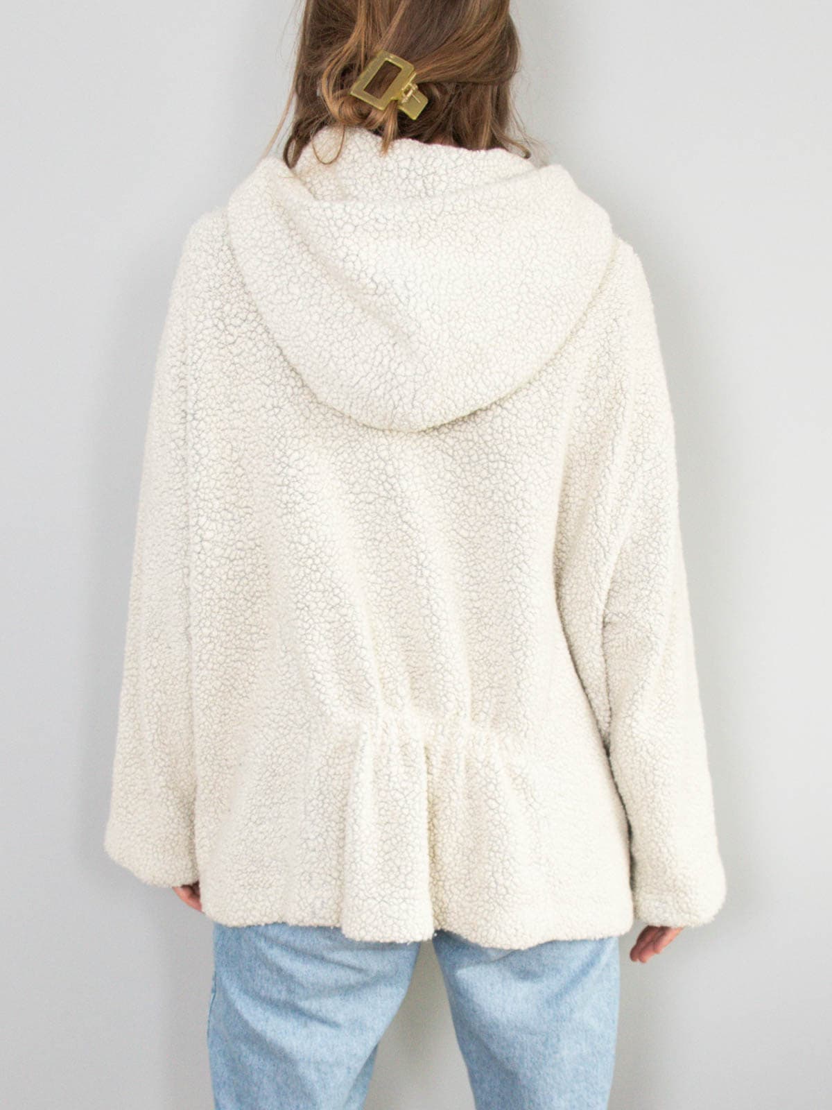 Beschreibung: Kuschelige Jacke aus reiner Wolle. Leicht tailliert geschnitten und mit zwei Taschen versehen.